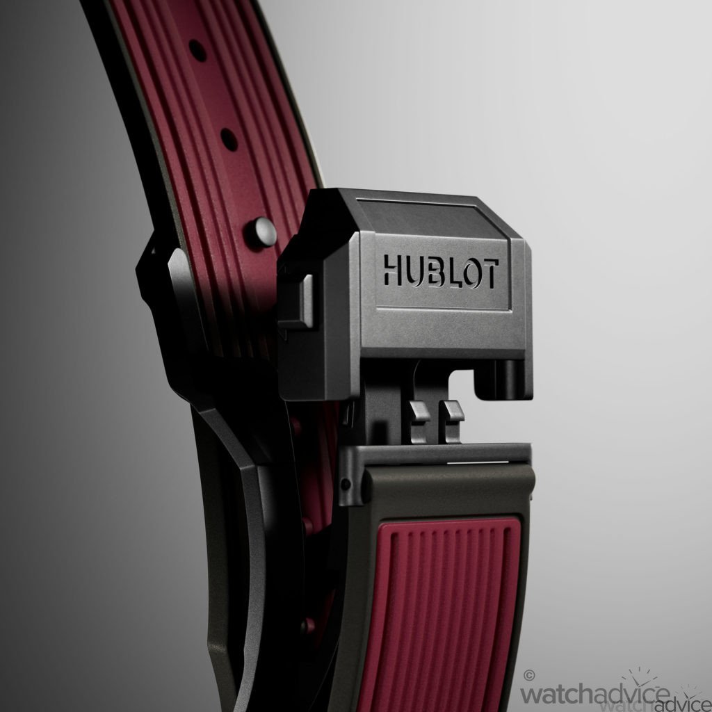 This all-new Big Bang e FIFA World Cup Qatar 2022 comes in a 44mm black ceramic and black titanium case, which is micro-blasted and polished. It comes with a black and burgundy colour-lined rubber strap, which nicely adds colour to the overall black appearance of this timepiece.