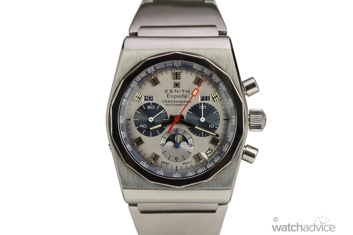 - Movement: Zenith El Primero Chronograph Calibre 3610 with moonphase, day, date and month.