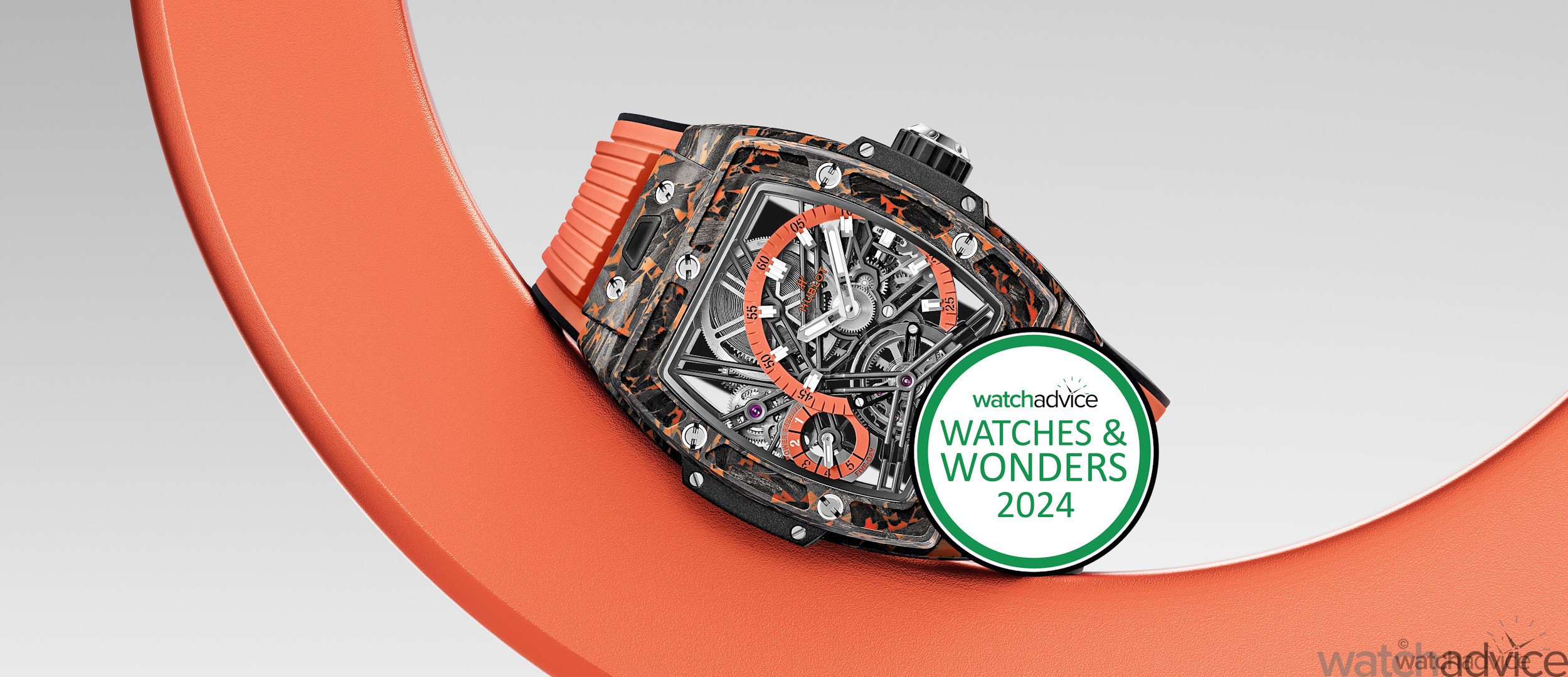 Now, for Watches & Wonders 2024, the brand has introduced a new “frosted” carbon colour to the mix: orange carbon! Like the previous other carbon editions, the 42mm case and bezel of this timepiece have been created with carbon fibre with orange micro-glass fibres, giving a vivid camo-print style aesthetic look to watch. While the blue version of this Spring of Big Bang Tourbillon looks stunning, this new orange by far stands out the most. To colour match the case nicely, Hublot is offering this Orange Carbon timepiece with a black and orange structured lined rubber strap.