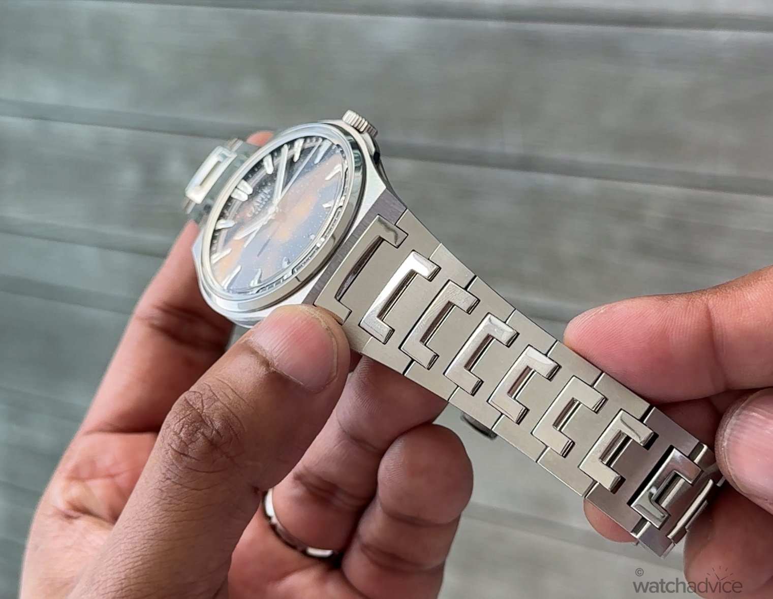 The bracelet and case are typically Czapek in their finishing. Brushed steel across the case and the bracelet to give the pieces that sporty look, and high polish on the inner links, and bezel. On the bracelet, Czapek has included a quick change mechanism, their patented “Easy Release” system to swap out for a strap, and in addition, something we’ve seen more of this year, micro-adjust on the bracelet allowing for an additional few millimeters each side for those hotter months of the year.