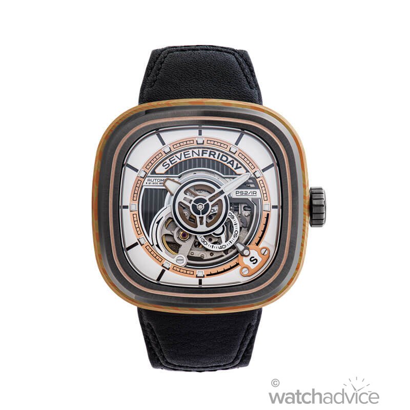 You may not have heard of SevenFriday, it’s not a hugely well-known or popular brand, but it does have a strong following from those who know, and those who know, love it! They do some cool retro-styled pieces and in a rounded square shape for the most part and the CuXedo is a great example. With an openworked dial, rotating small seconds ring and rather than the date, a window indicating the day make this a fun watch. The animation ring is done in Damascene, a process that fuses different metals together to create a unique pattern. Sized at 47.6mm, it’s a large watch, but it’s fun and for someone who wants to buck the norm and go their own way in the watch world.