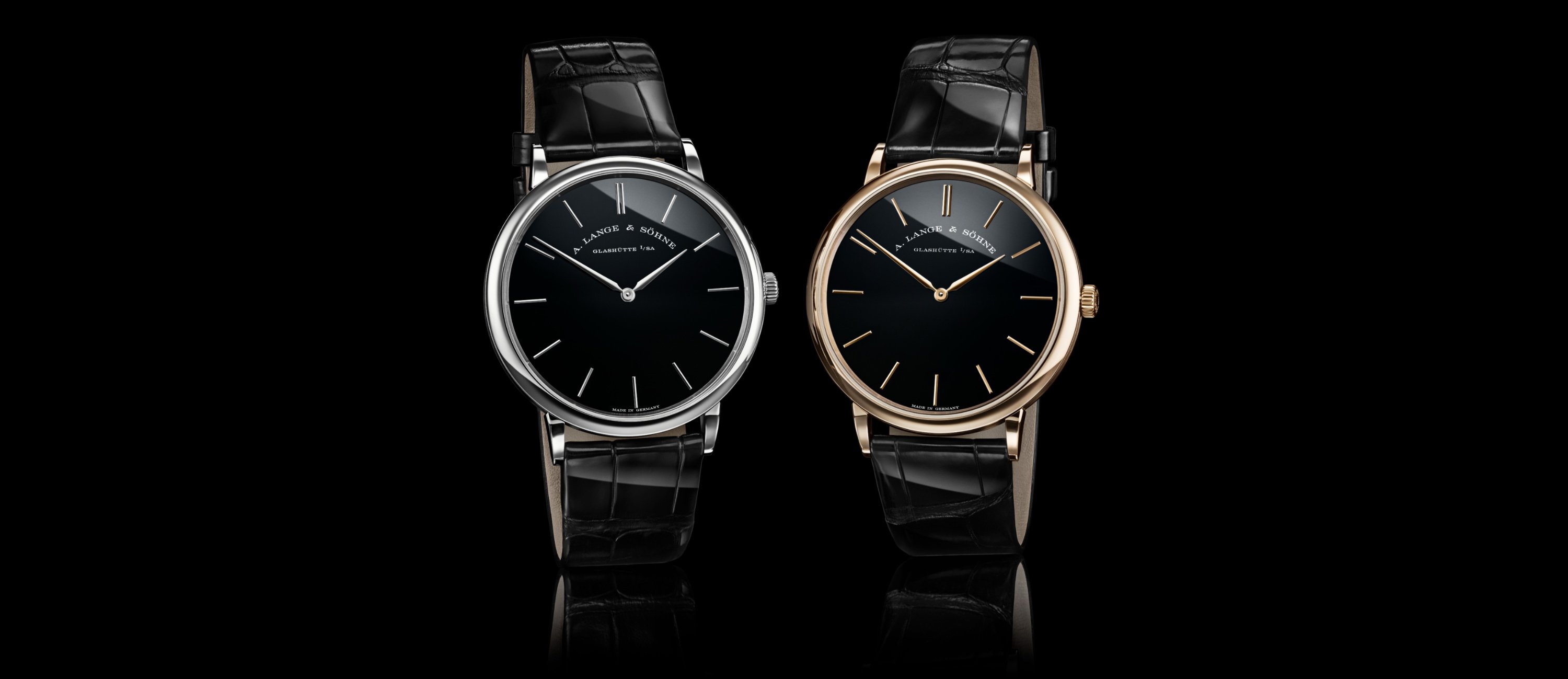 A. Lange & Söhne has released two new limited edition Saxonia Thin models, one in 18k HONEYGOLD® and one in Platinum, both exuding pure class with a gloss black onyx dial!
