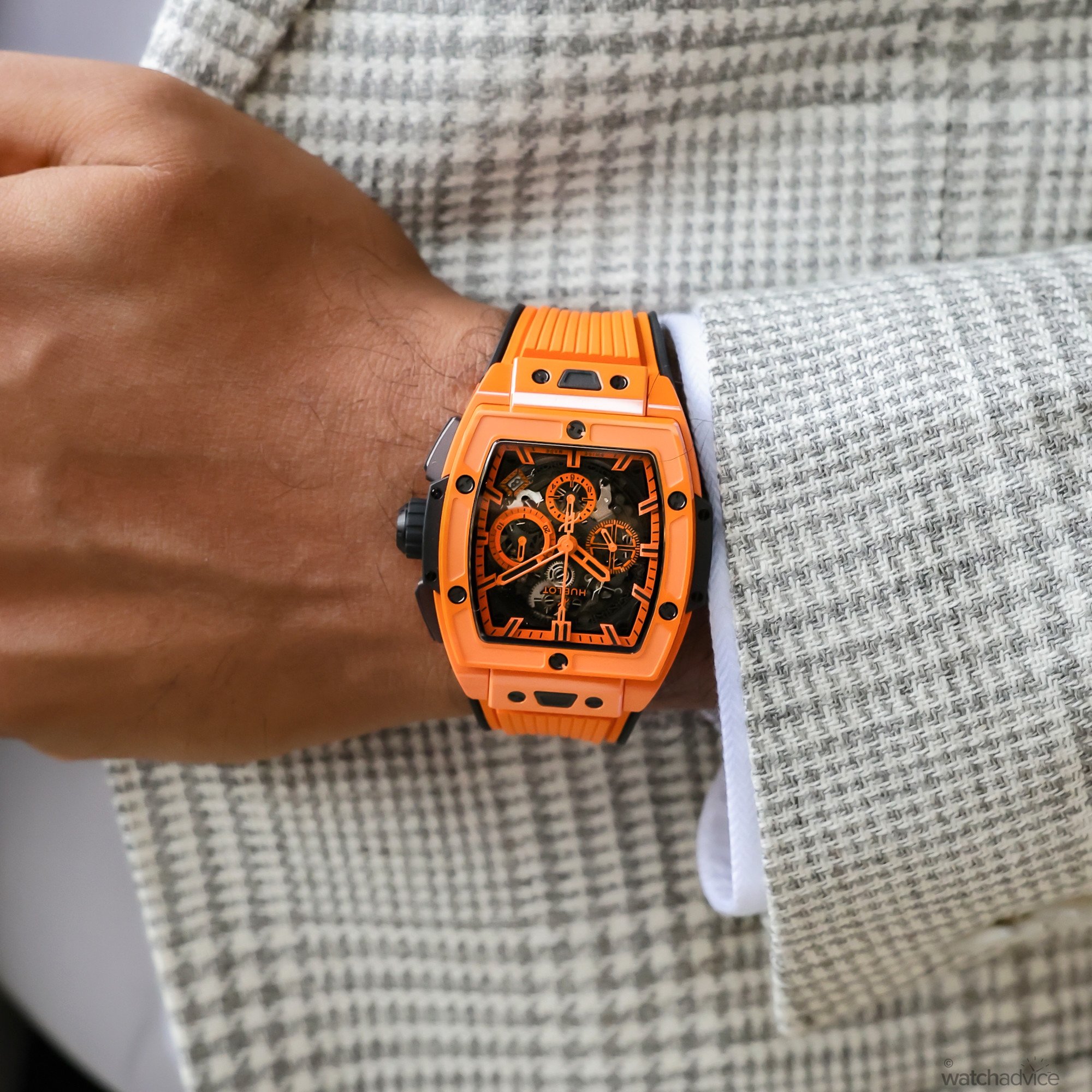 Whether you want bright and vibrant or dark and stealthy, Hublot now has two options in the Spirit of Big Bang collection with the introduction of an Orange Ceramic and Frosted Carbon models.