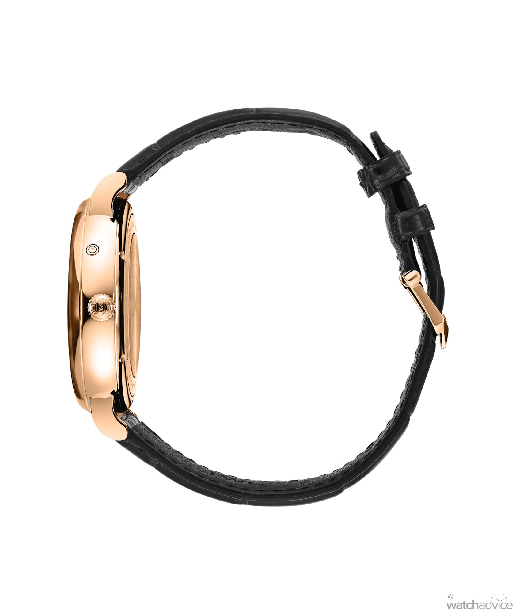 • Bracelet/Strap: Black alligator strap with calf leather lining. 18k 5N gold pin-buckle.