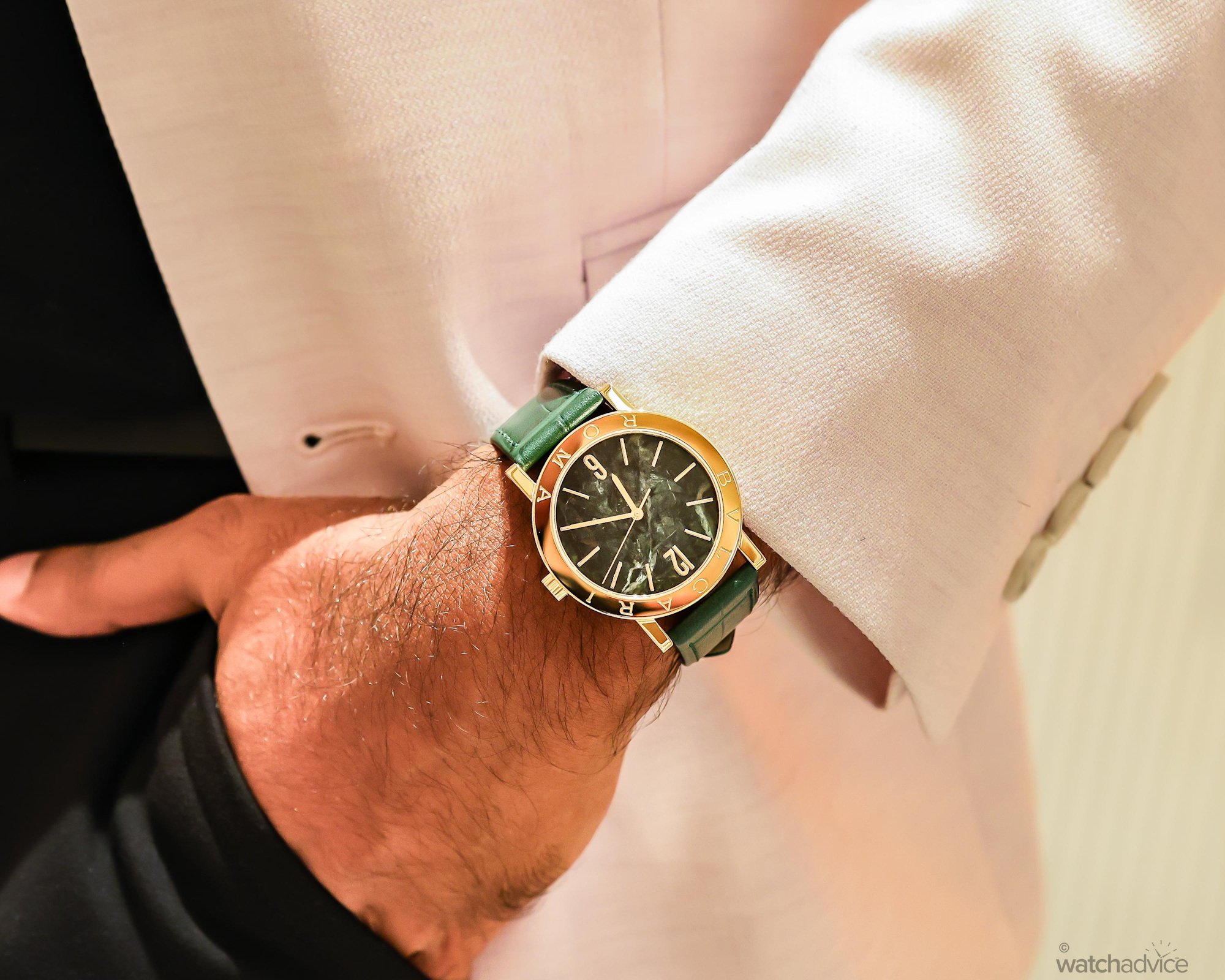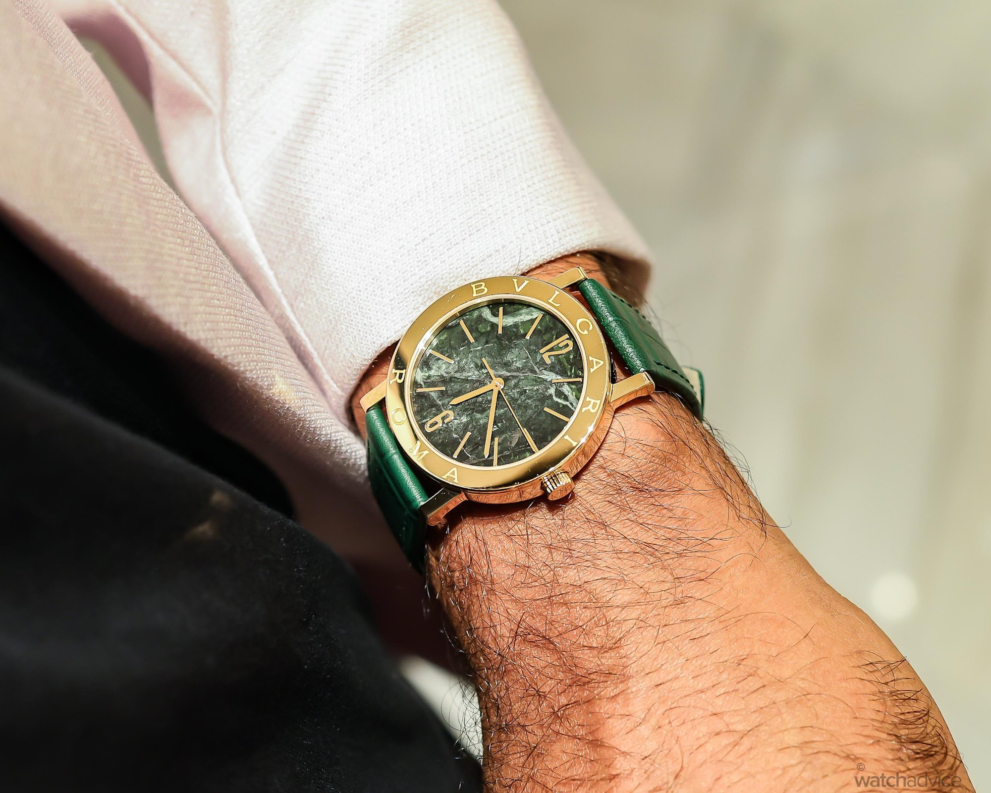 My choice, on the other hand, leans towards the classical watchmaking of Bvlgari, with a twist, however! This latest Bvlgari Bvlgari timepiece is a limited edition with a Verde Alpi green marble dial!