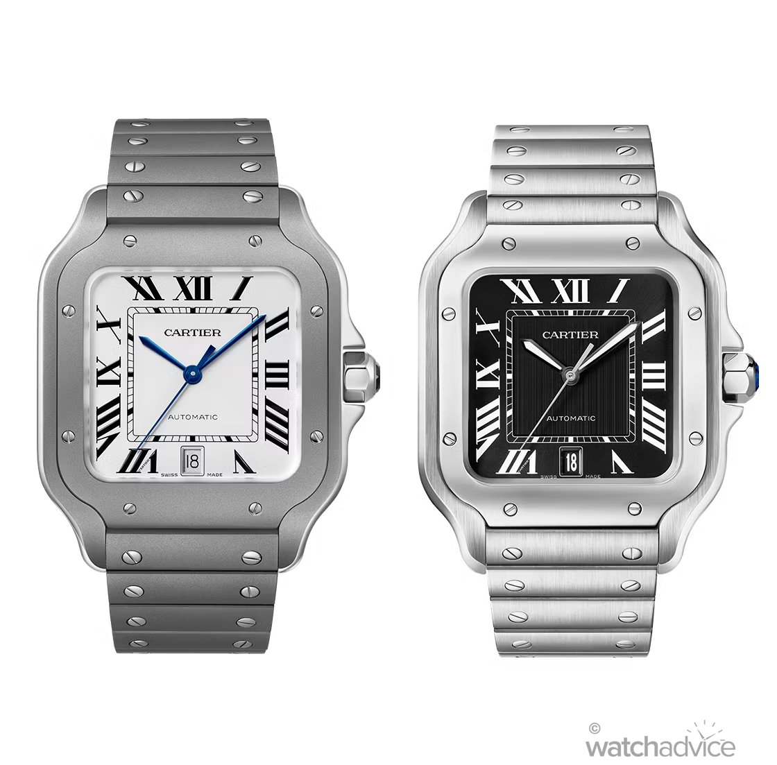 The Cartier Santos de Cartier is arguably one of the most popular timepieces in the world of watchmaking. When the original model was first developed in 1904 by Louis Cartier for the Brazilian aviator Alberto Santos-Dumont, it was a symbol of daring design, as square-faced timepieces were virtually unheard of at the time. While most watches of the era featured traditional round cases, the Santos broke convention with a stunning proportionate silhouette that featured exposed screws.