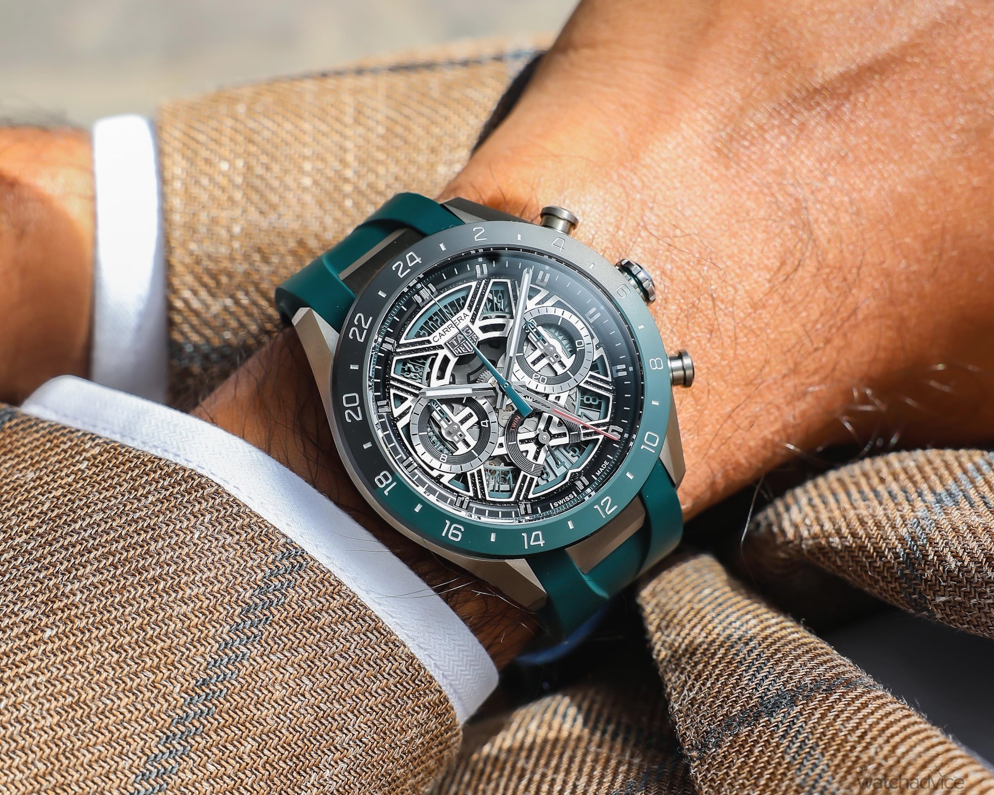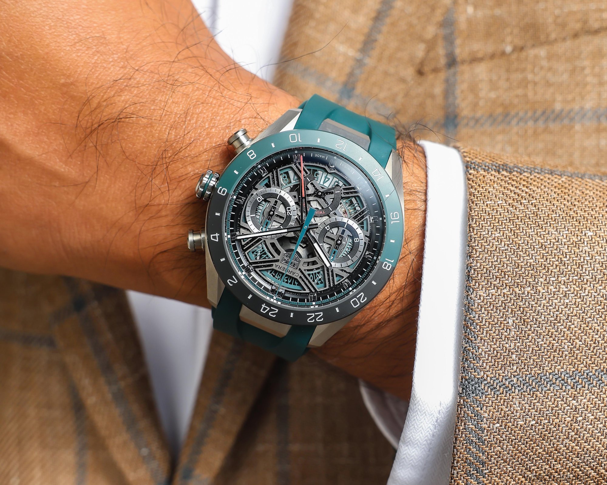 Priced at just $13,750 AUD, the Carrera Chronograph Extreme Sport Twin-Time presents excellent value for money. The titanium case, paired with the brand’s first-ever single-piece dual-colour ceramic bezel, gives the watch an unmistakable premium edge. Add to this the skeletonised dial with the unique, intricate architectural design, the sort you would find on much higher-priced timepieces, and you have a watch that delivers both technical achievement and aesthetic sophistication in one timepiece.