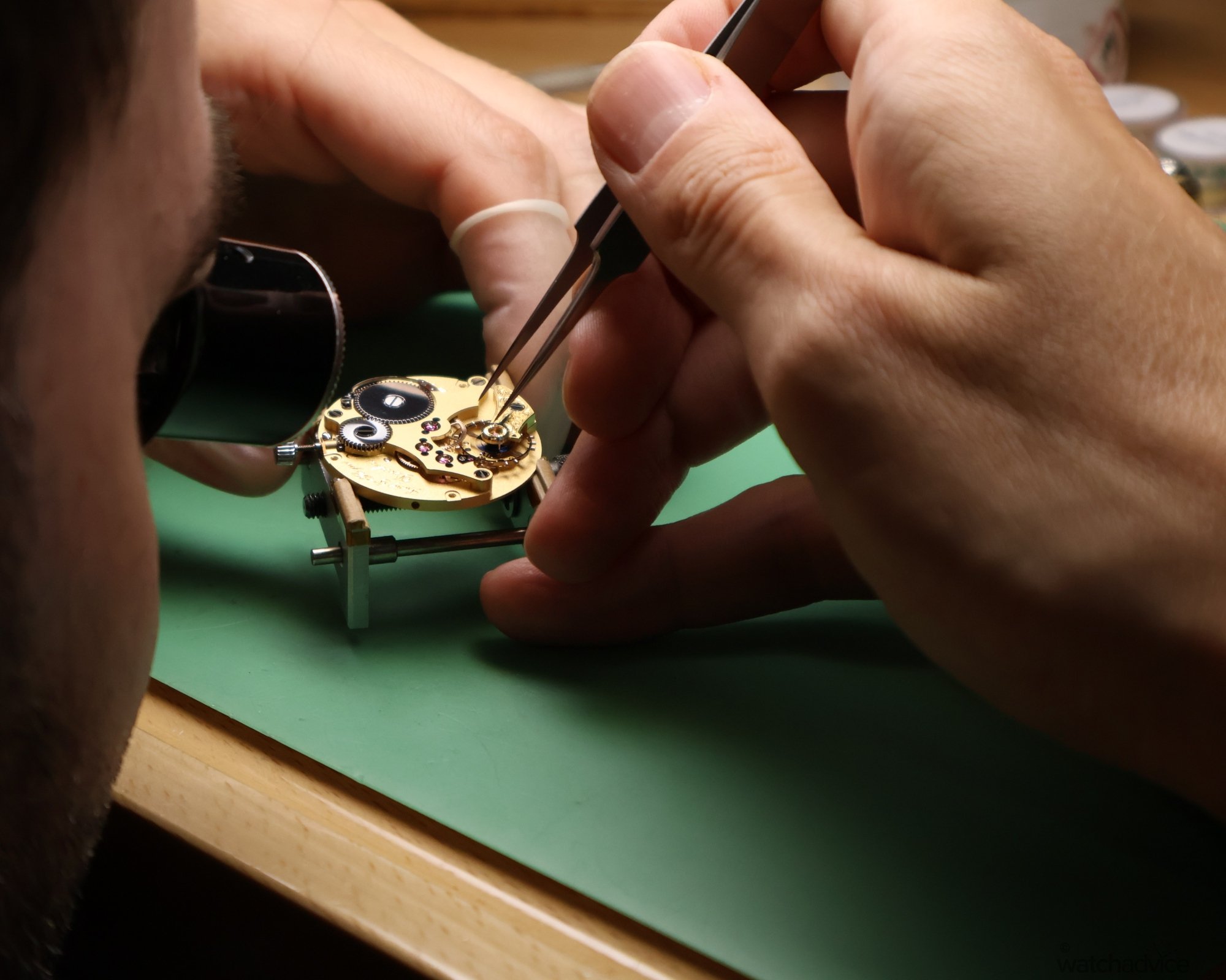 For Steve, it was a moment of pure wonder; His own Lang & Heyne Georg model featured a custom set of baroque-style hands. By coincidence, we arrived just as Mathias was working on a similar set, delicately refining them under a microscope. Watching him work in absolute awe, I was struck by how perfectly he embodied Germany’s devotion to fine craftsmanship. Even when he paused to inspect his work (which, to my eyes, looked flawless), he simply remarked that it was ‘not good enough.’ He told us that he anticipated refining that same set of hands long after we had gone.