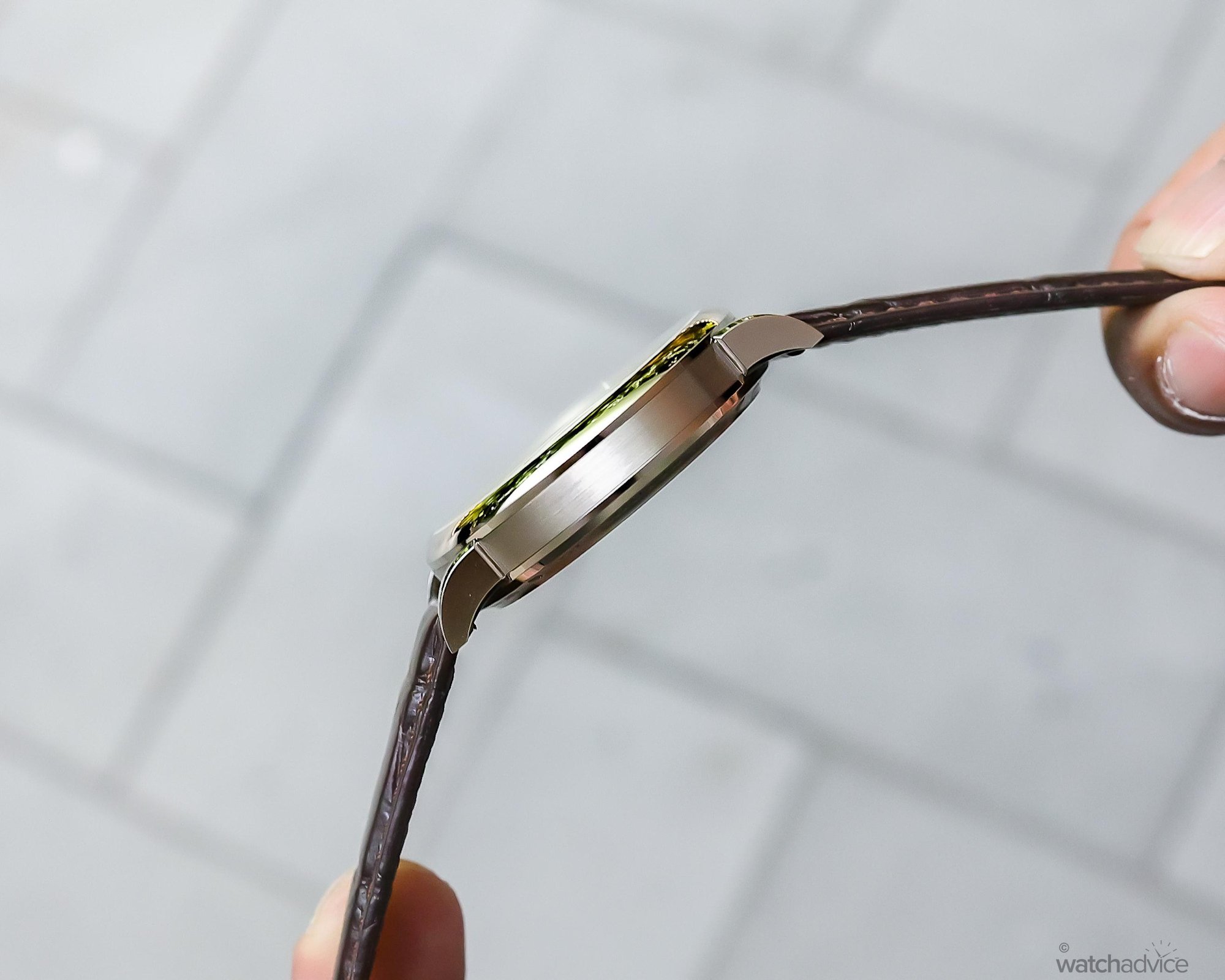 The finishing of the case is also what gives the timepiece some of it’s aesthetic appeal. The mirror-polished bezel and brushed mid-case creates a play of contrast that shines beautifully at different lighting angles, reinforcing the timepiece’s vintage-inspired elegant aesthetic. The 18-carat pink gold dial complements the white gold case that allows both materials to stand out nicely. If this was paired on a gold case, I would say that the watch would’t be as aesthetically pleasing as the dial and case tones would be too similar.