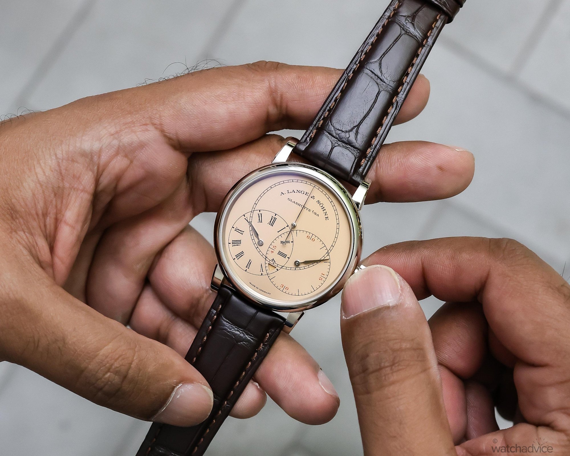 The Richard Lange Jumping Seconds is offered in 750 white gold, which I personally think complements the 18-carat pink dial beautifully, allowing it to stand out without drawing too much attention away from the overall design. In contrast, the black dial variant offers a more formal, dressy appearance. Personally, I prefer the combination of white gold and the sand-toned dial, as it gives the watch an element of luxury while adding just the right touch of warmth and character.