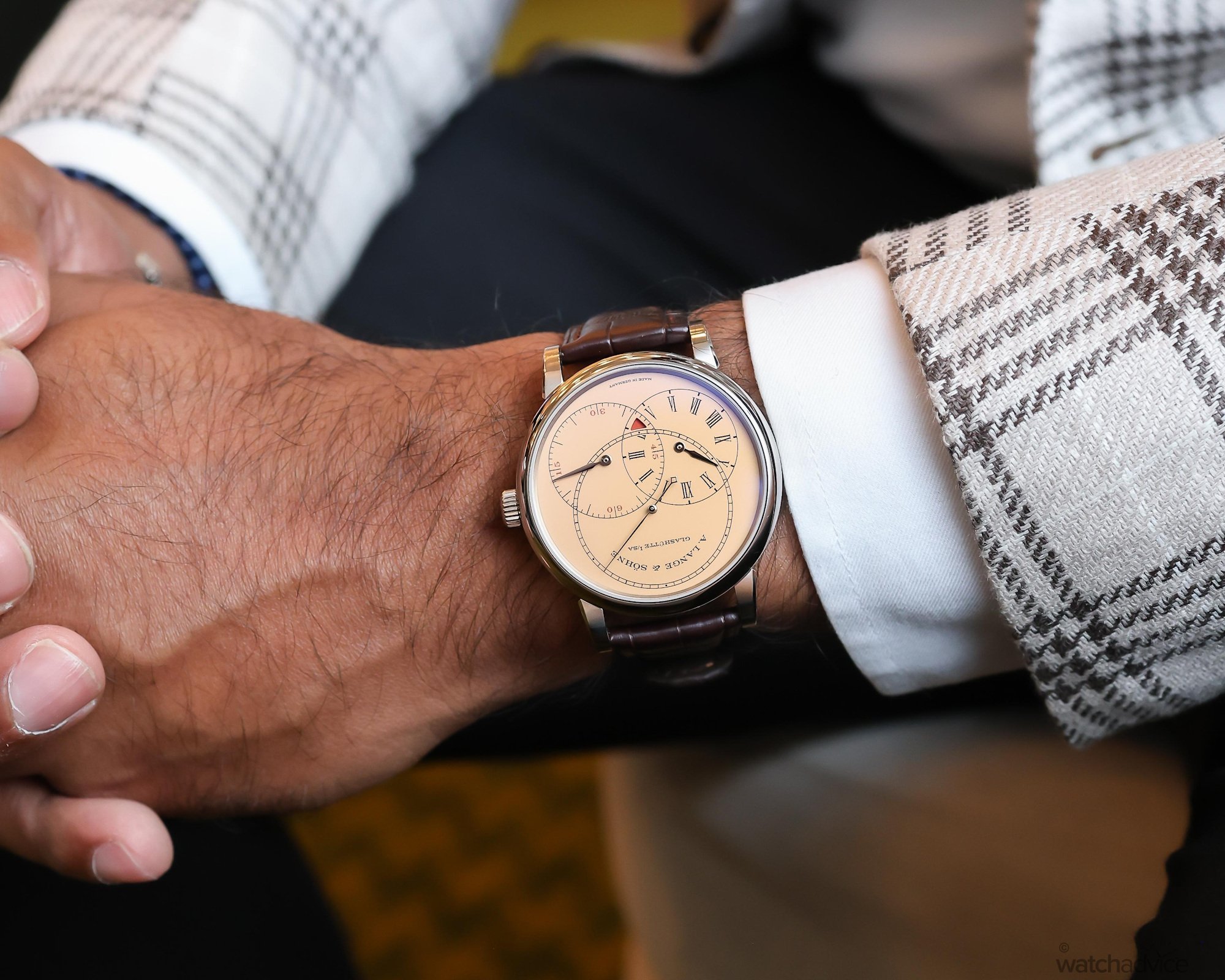 The Richard Lange Jumping Seconds is offered in 750 white gold, which I personally think complements the 18-carat pink dial beautifully, allowing it to stand out without drawing too much attention away from the overall design. In contrast, the black dial variant offers a more formal, dressy appearance. Personally, I prefer the combination of white gold and the sand-toned dial, as it gives the watch an element of luxury while adding just the right touch of warmth and character.