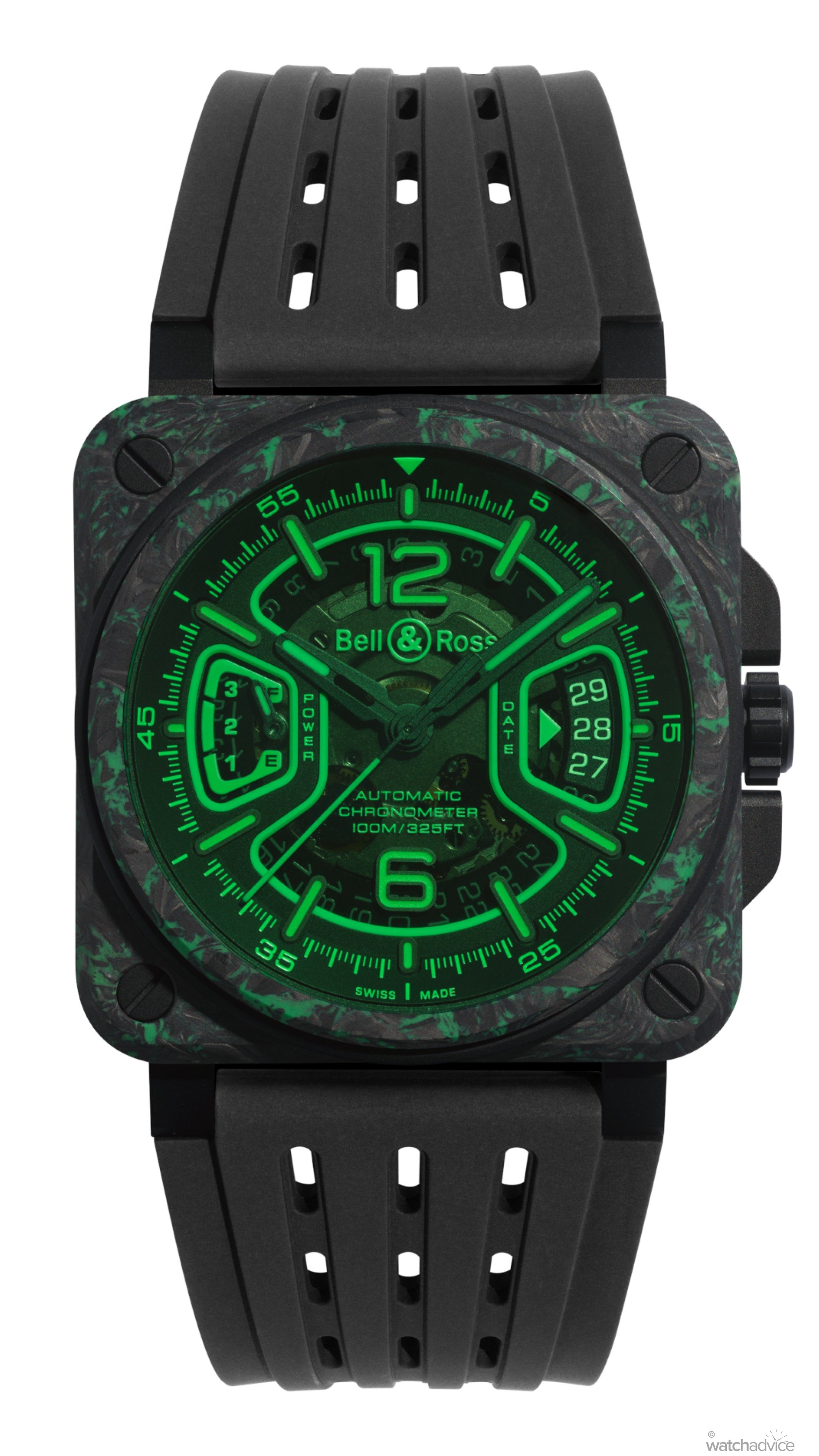 But that’s not all, though, as the BR-X3 Night Vision’s carbon case has also been injected with veins of lume, making for a truly unique viewing experience at night. However, even the case can’t steal the show from the ridiculous green aura pulsating from the dial, which has been positively overloaded with the stuff.