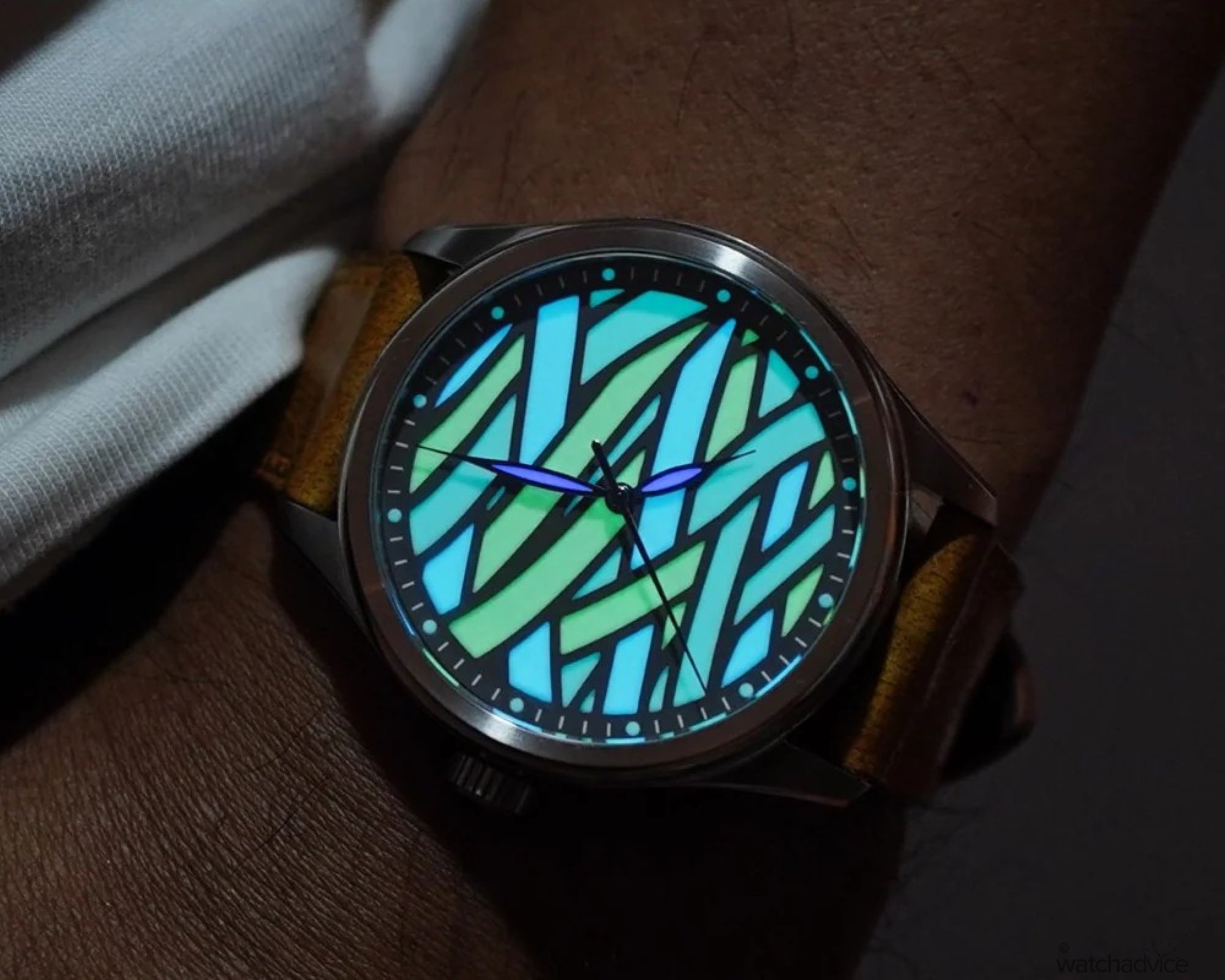 With a monochromatic dial, the timepiece is inconspicuous enough by day, but the true secret is revealed at night. Three different colours of lume come to life, decorating the dial with a dazzling display of colours. While you might get easily hypnotised, don’t forget that this watch is more than its party trick. Houtman still builds their watches to work, as shown by its 100m water resistance and the ever-reliable Sellita SW200 automatic movement.