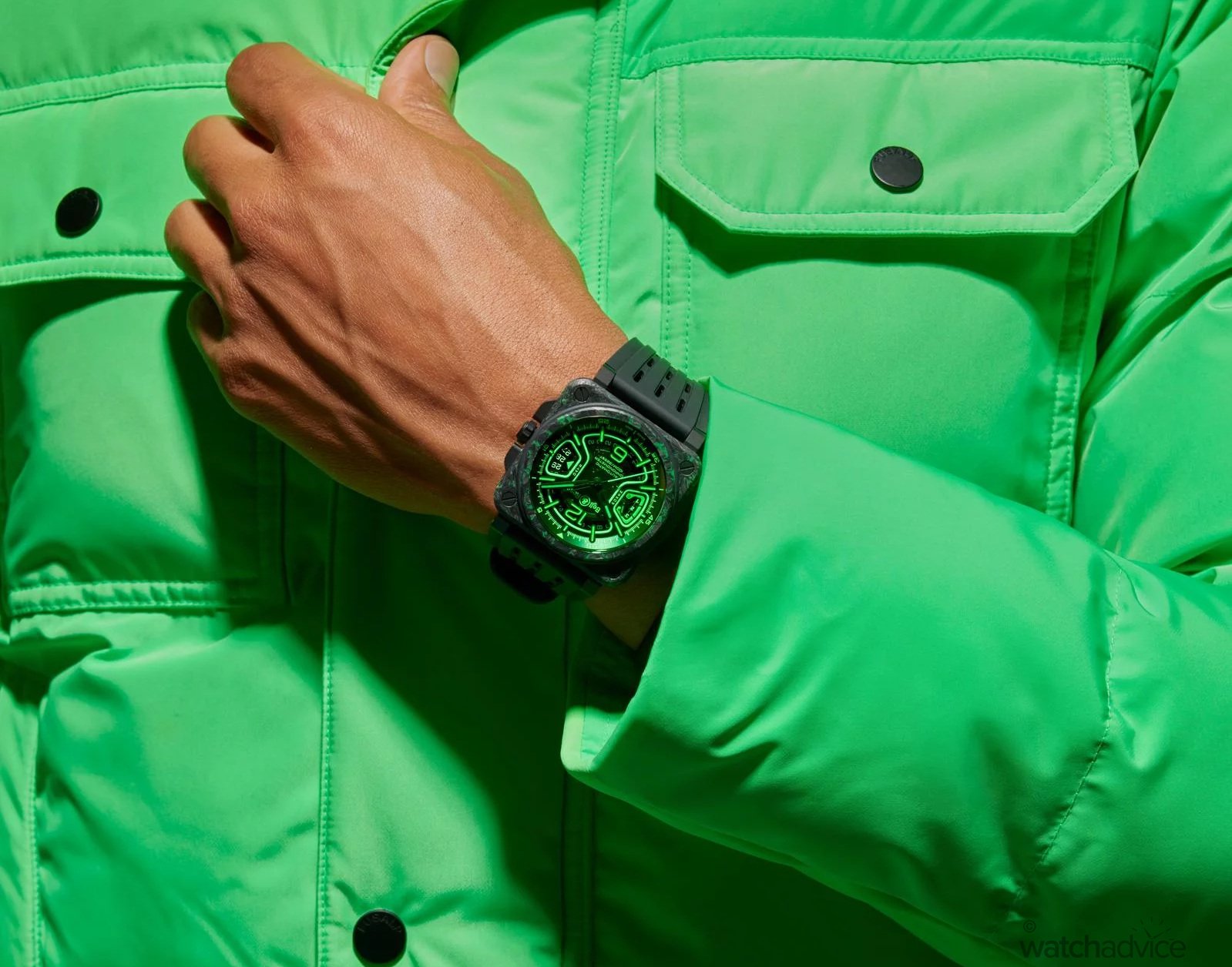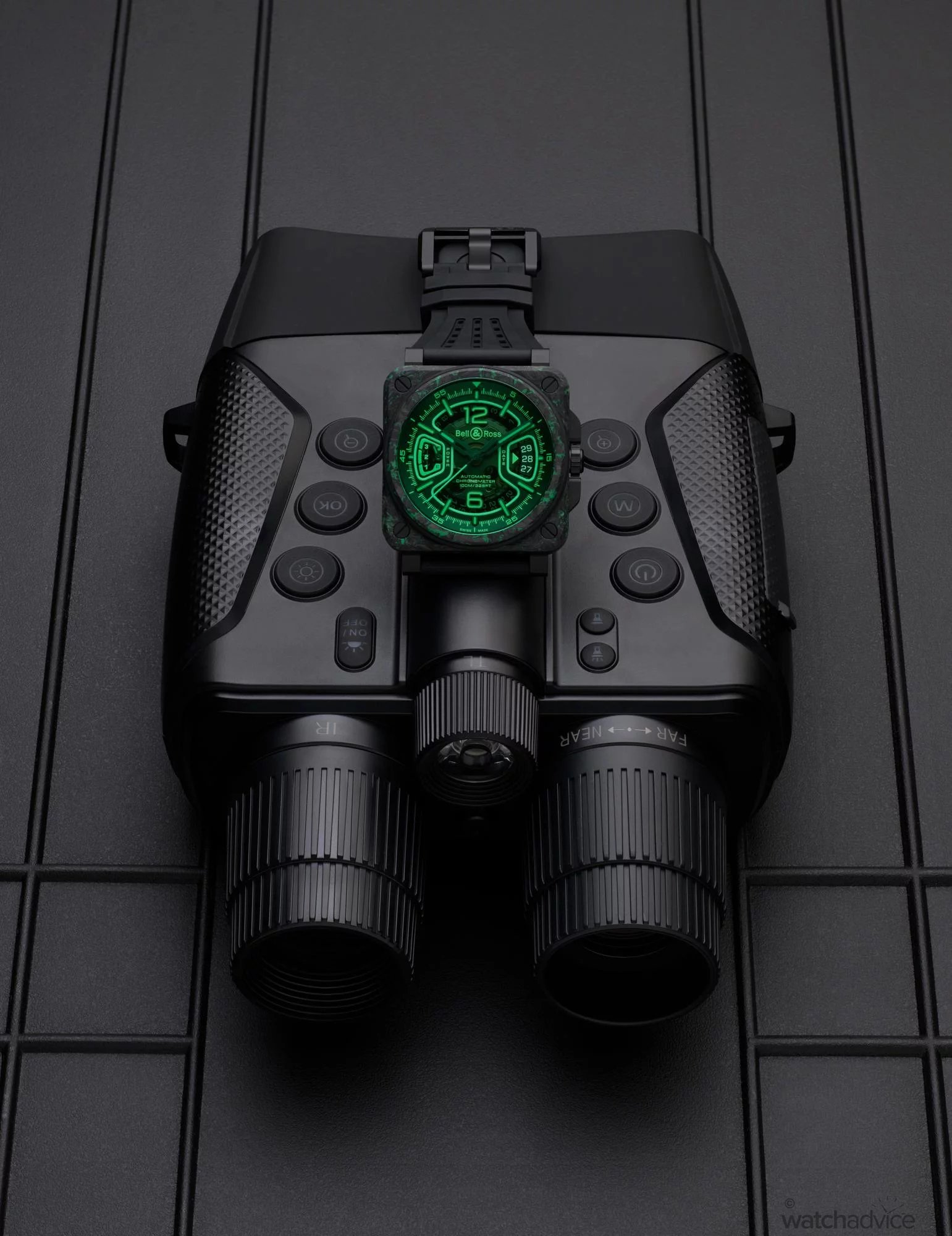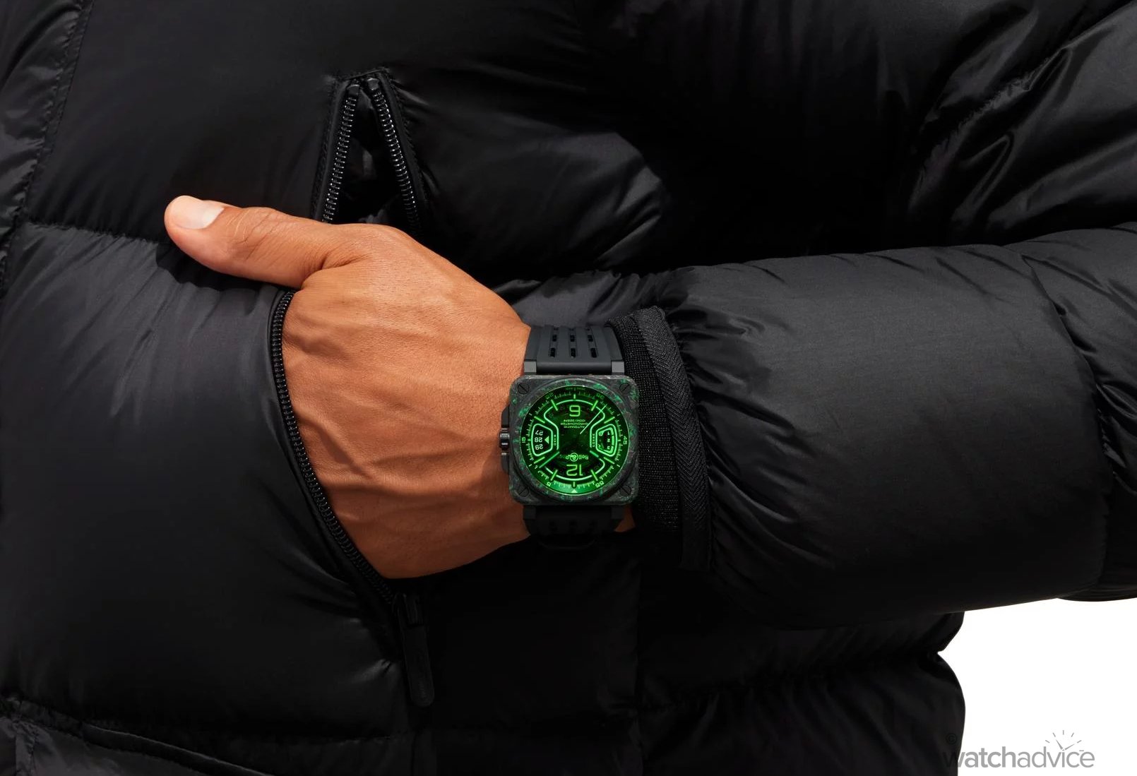 At its core, this new BR-X3 Night Vision is Bell & Ross’s adventuring into new, bold, and technical territory. While the brand has several pieces in its Haute Horlogerie and Concept collections that feature sapphire and ceramic materials for case construction, there is nothing quite like what’s featured on the BR-X3 Night Vision. Not only is the material made from ultra-light and strong carbon fibre, but it’s also imbued with SLN resin to make the structure of the carbon fibre give a stunning green glow. There is only a handful of brands in the watchmaking industry that have pushed the boundaries of material construction such as this, showcasing Bell & Ross’s commitment to fusing advanced technology with a distinct design language. The BR-X3 Night Vision isn’t just a luminous experiment; it’s proof that the brand is ready to compete at the very forefront of contemporary high-performance watchmaking.