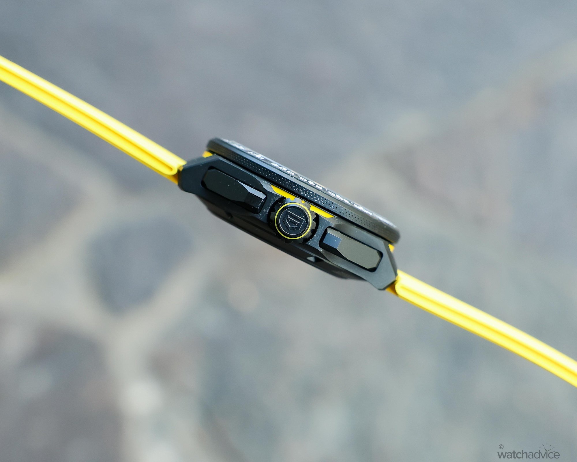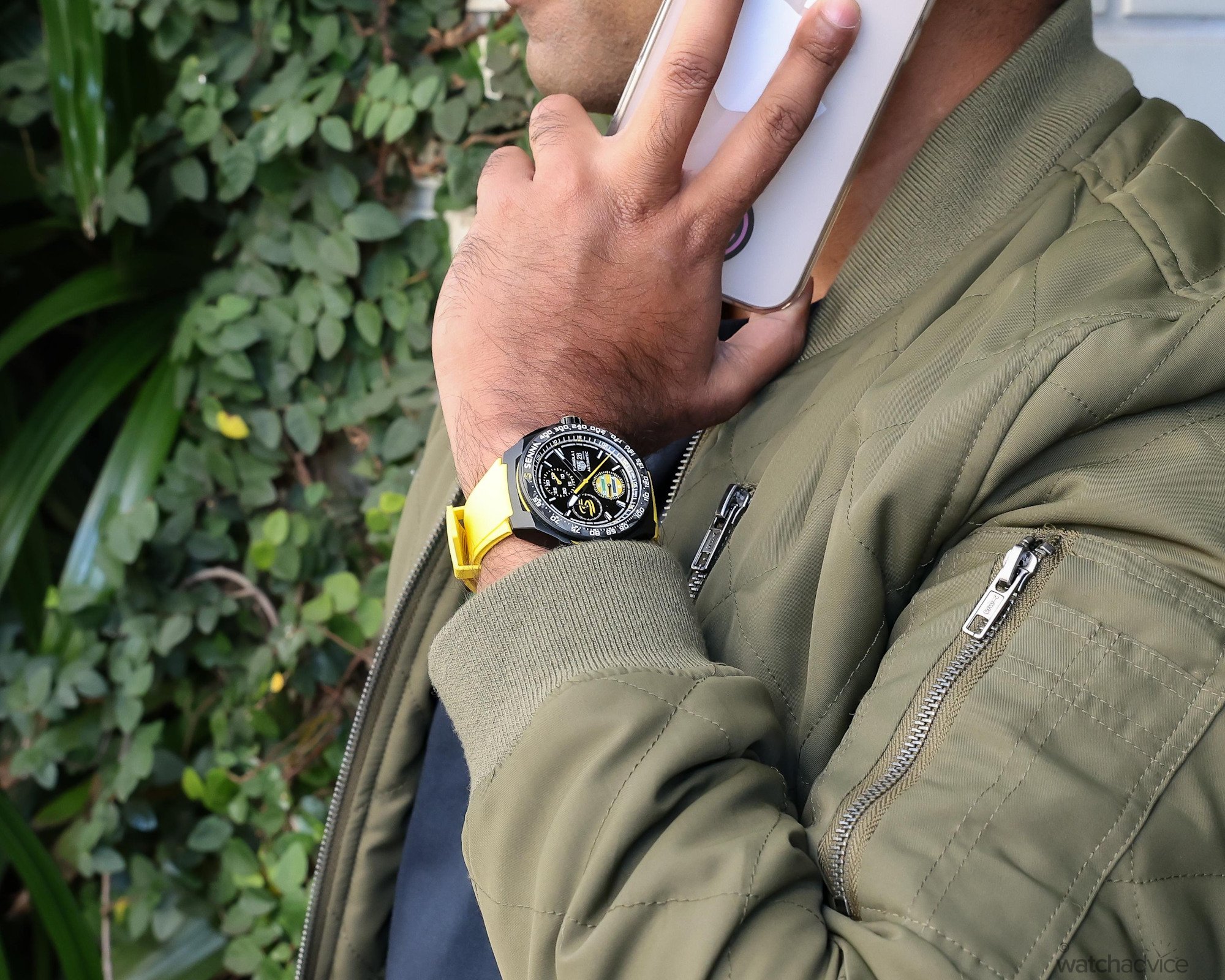While the crown also features a black coating, it features a subtle yellow ring. This yellow ring is also a detail that appears underneath the bezel, subtly breaking up the unity between the case and bezel. I personally love these minor colourful details on the case, as it’s just the right amount of yellow to catch the eye without overdoing it. It’s a subtle reminder of Senna’s iconic racing helmet colours, perfectly tying the design back to his legacy while keeping the overall aesthetic sleek and modern.