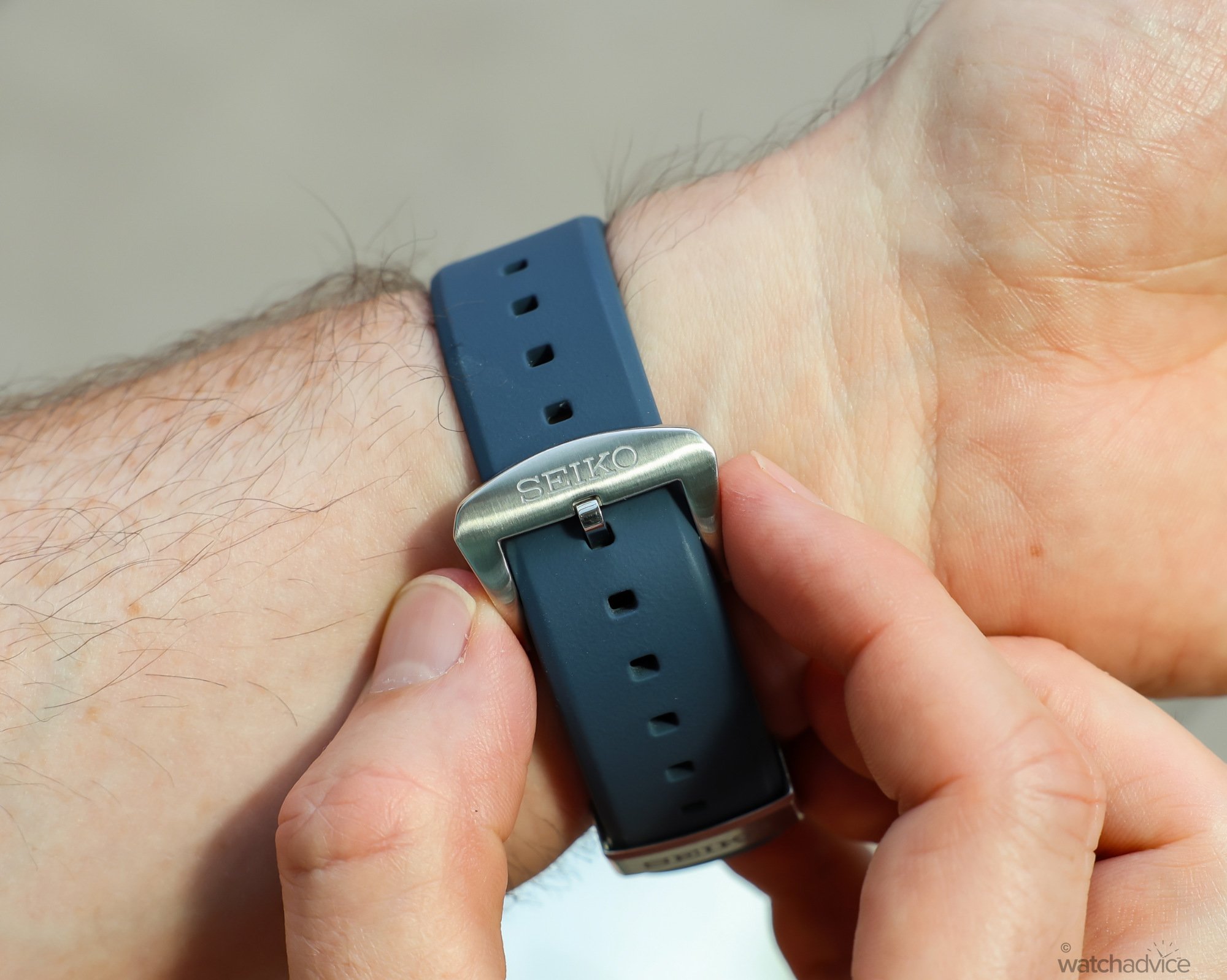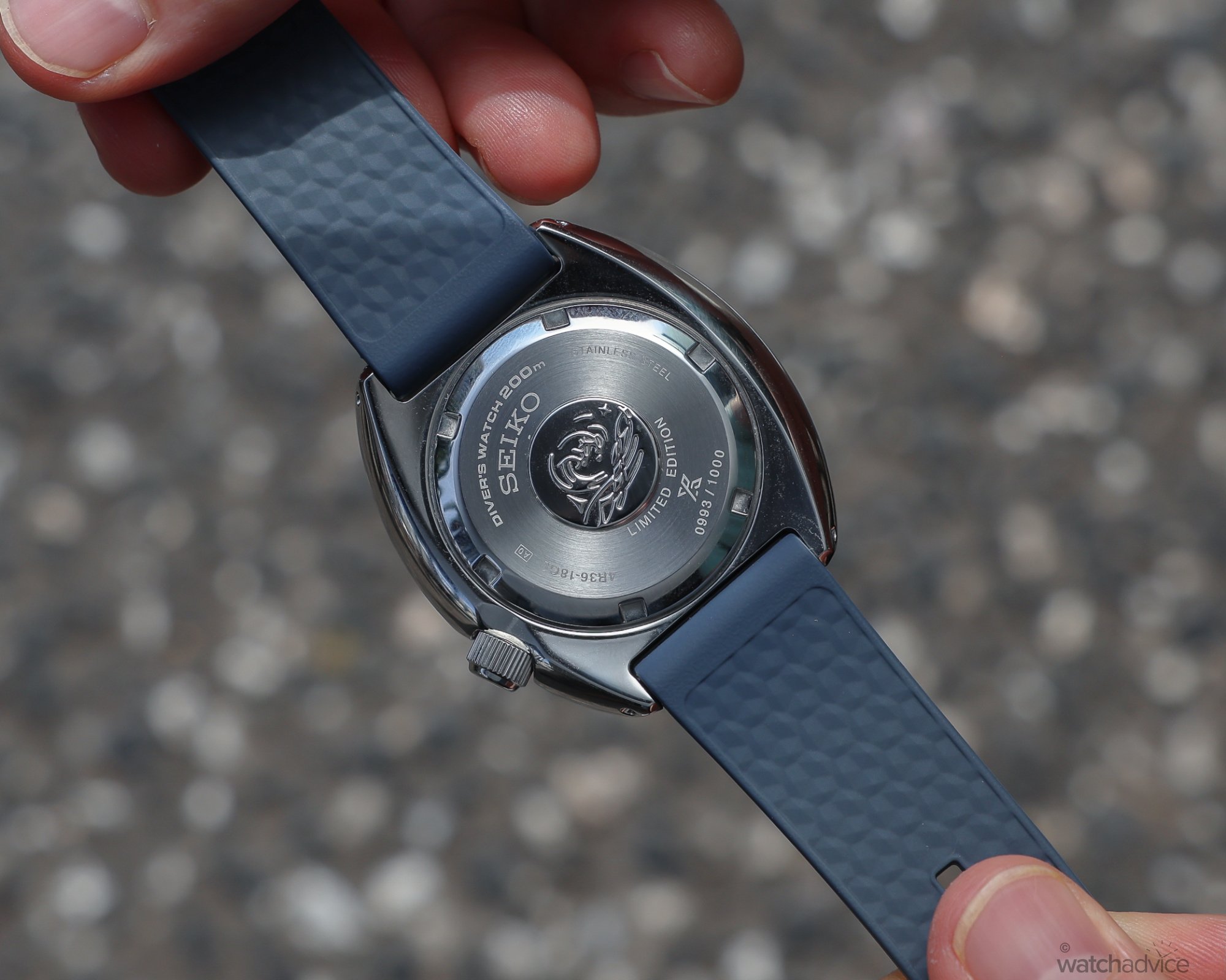 The caseback sits in the case, so it’s not raised on the wrist and beinga screw down, ensures the 200m water resistance.