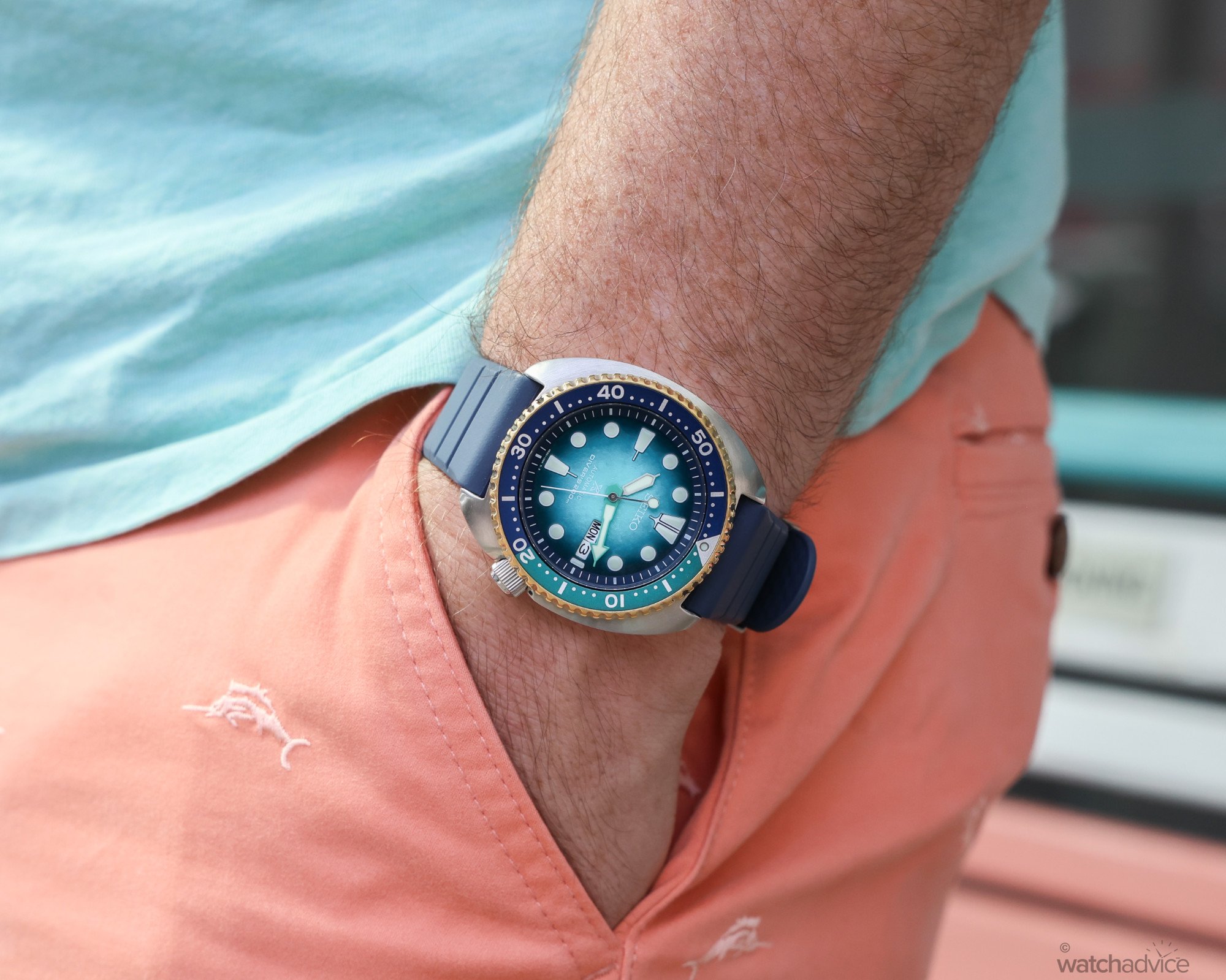 I first saw the new Seiko Prospex “Kame” a few days before its launch at the Seiko x Watch Advice night, and when I first saw the photos on screen, I thought it was actually quite a nice looking watch with a good use of the colour which take inspiration from the waters and sands around Fitzroy Island in North Queensland. However, it wasn’t until I was able to put it on my wrist on the night that I was really sold.