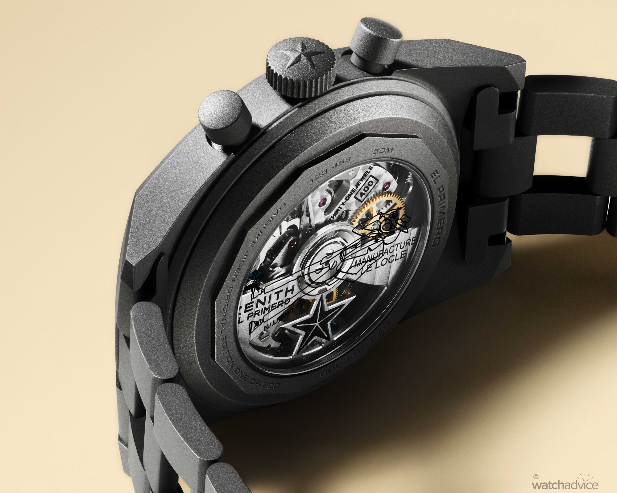- Movement: Automatic Cal. El Primero 400 with date & chronograph (30min, 12h registers) complications