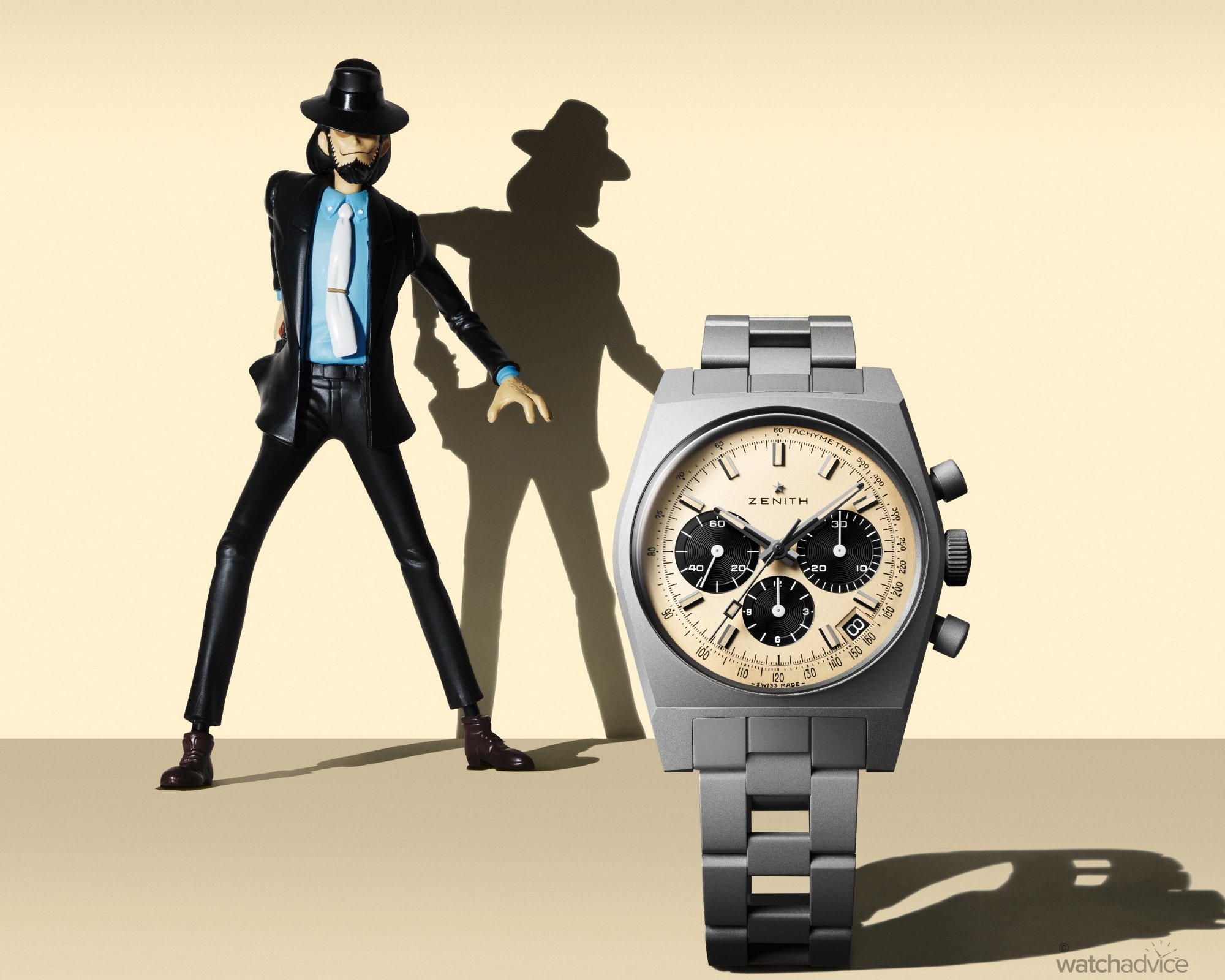 But while Light Yagami scribbles in the Death Note with his Omega Speedmaster, and Jotaro Kujo’s TAG Heuer is stolen from him, one of the best examples of watch-wearing in Japanese fiction is Daisuke Jigen in Monkey Punch’s Lupin the Third. An unflappable sharpshooter, Jigen is shown wearing watches that closely resembled the Zenith A384 — first with a black dial, later with a silver panda dial. The watch never existed in 1971, yet it became an enduring part of Jigen’s visual identity and eventually caught Zenith’s attention.