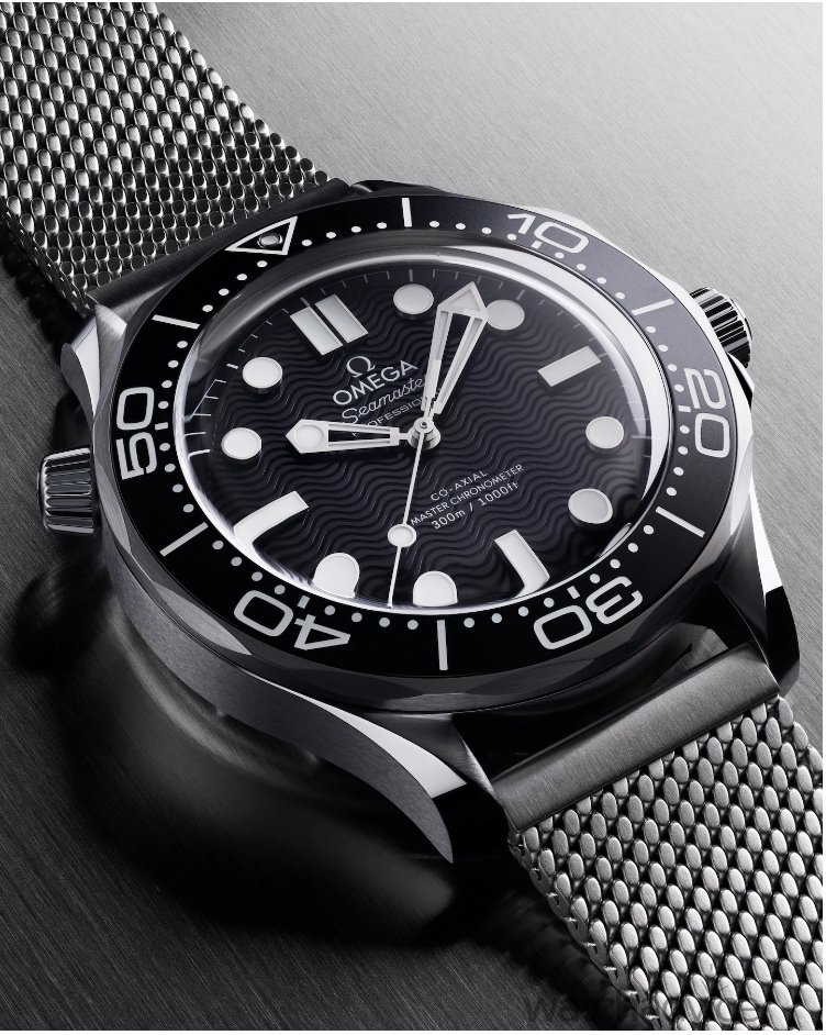 In late 2022, to mark the 60th anniversary of James Bond, Omega released a stainless steel special edition with a blue oxalic anodised aluminium dial and tight-wave pattern, inspired by the Brosnan era. It included the Spectre lollipop seconds hand, No Time To Die’s domed crystal, and Milanese bracelet—a fan favorite.