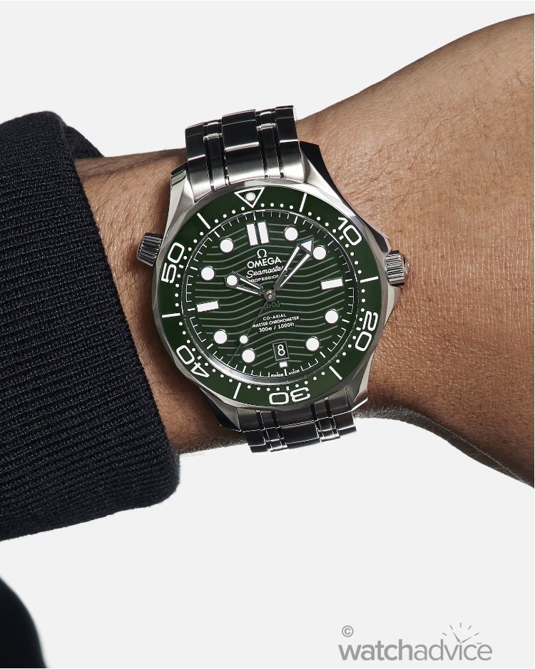 Initially offered in blue, black, and chrome-blue, this generation introduced classics like ‘Seaweed Green’ and ‘Polar White,’ along with special editions, as is the OMEGA way. Some special editions feature matte, no-date dials with raised waves.