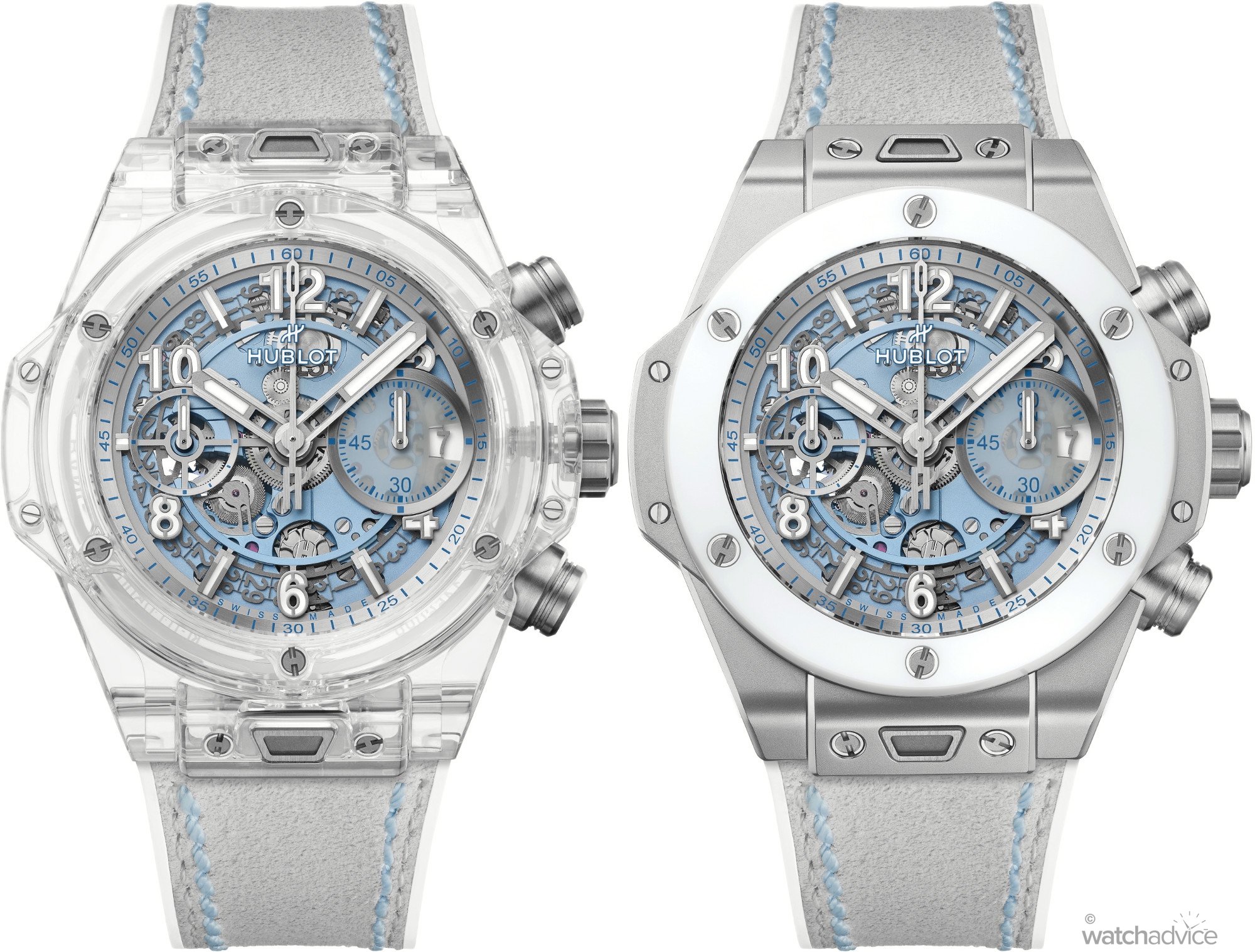 Today, Hublot has released two new Big Bang Unico models that have been designed for winter, and are dubbed as such, the Winter Editions: A Big Bang Unico Winter Sapphire and a Big Bang Unico Winter Titanium Ceramic. Both are complete with the frosty colours that depict a Northern Hemisphere winter – light blues, whites and of course, clear sapphire. But, I feel these are perfect for our summer! Wait, hear me out…