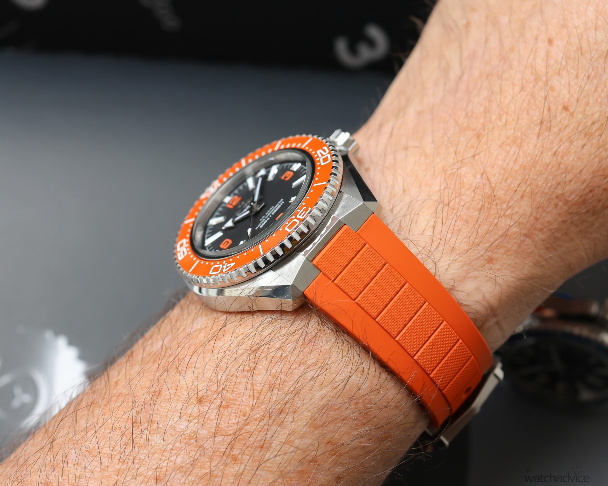 Legibility and contrast take priority here, and the result feels closer to what the Planet Ocean originally represented — a no-nonsense professional diver with just enough visual personality to stand out. This is where some of the design language from the Ultra Deep comes into play. Also, gone is the date window.