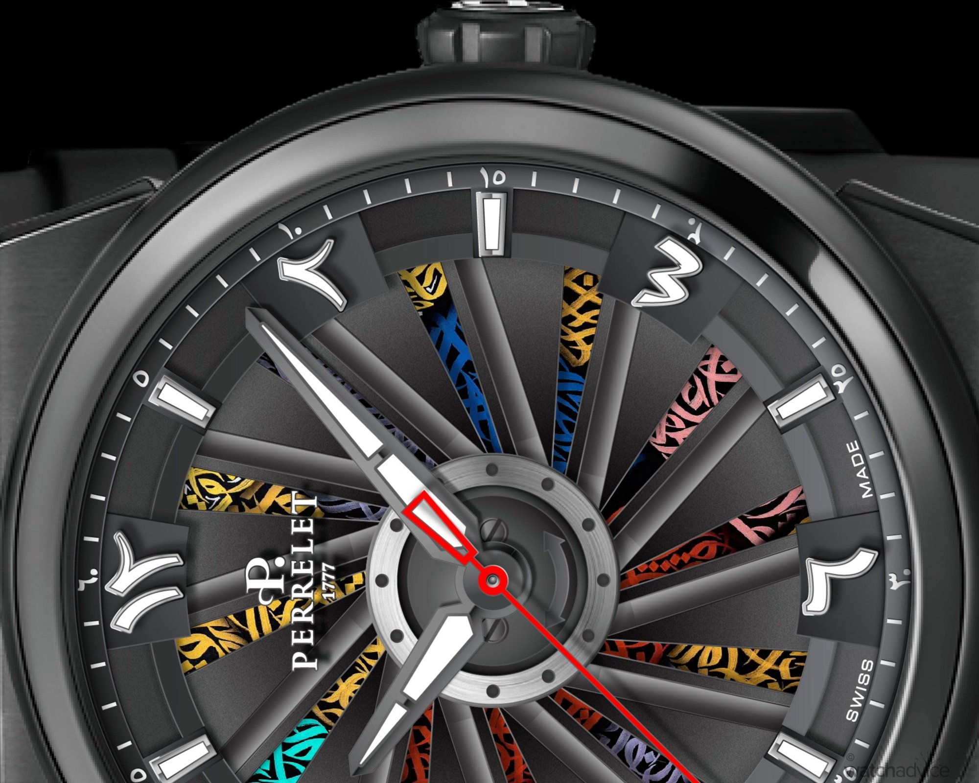 Collaborating with UAE-based Egyptian artist Diaa Allam, Perrelet uses their unique Turbine as a canvas for his art.