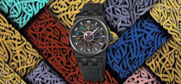 For Dubai Watch Week 2025, Perrelet returns to the world of fine art to unveil a new rendition of their iconic Turbine line. For this project, the Maison has collaborated with Diaa Allam, a UAE-based artist born in 1981 in Ajman. Widely known for his large-scale live performances, his murals have become prominent features across the UAE. Reflecting a vibrant, layered, and kinetic artistic language, Allam specialises in three-dimensional Arabic calligraphy, fusing traditional scripts with modern visual depth and colour.