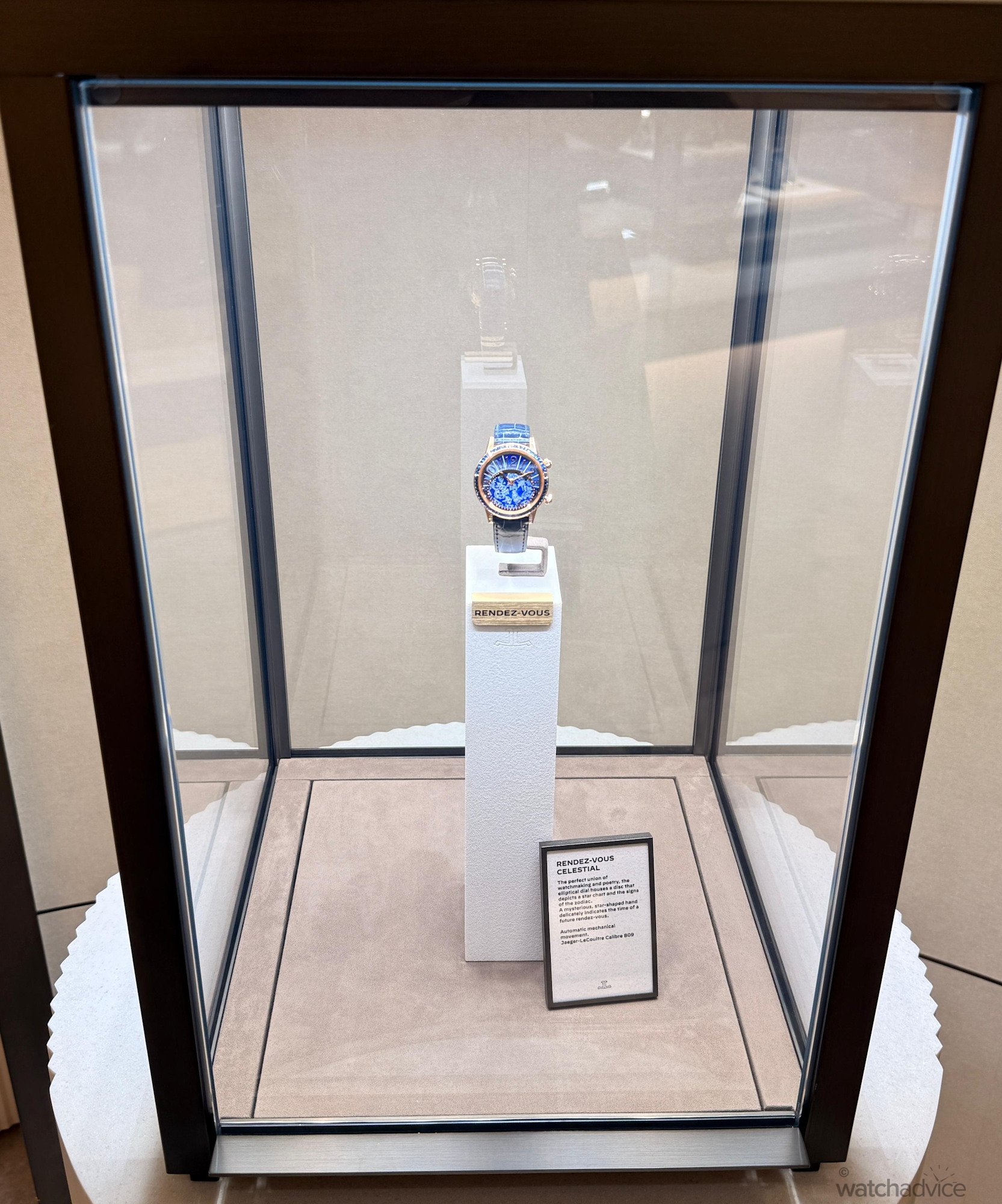A watch that deserves its own display is the Rendez-Vous Celestial. It is a piece that showcases Jaeger-LeCoultre’s approach to high-watchmaking. The star-studded sky chart, along with the stunning gem-set display, makes it one of the standout creations in the Rendez-Vous collection. Seeing this timepiece presented on its own makes you truly appreciate its beauty and complexity.