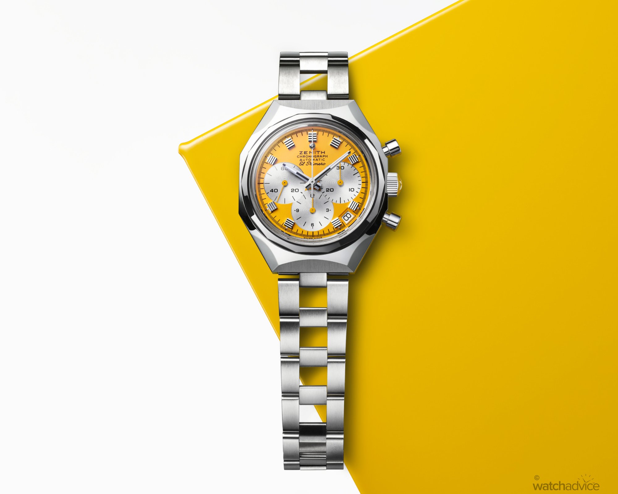 Another yellow-dial stunner comes from Zenith with their latest DEFY Chronograph X USM. Unveiled during Geneva Watch Days 2025, the DEFY Chronograph X USM is a joint project with Swiss furniture manufacturer USM (Ulrich Schärer Münsingen). This timepiece reimagines the original 1969 DEFY with fresh design codes and four vibrant colours inspired by USM’s iconic 60s-style modular furniture.