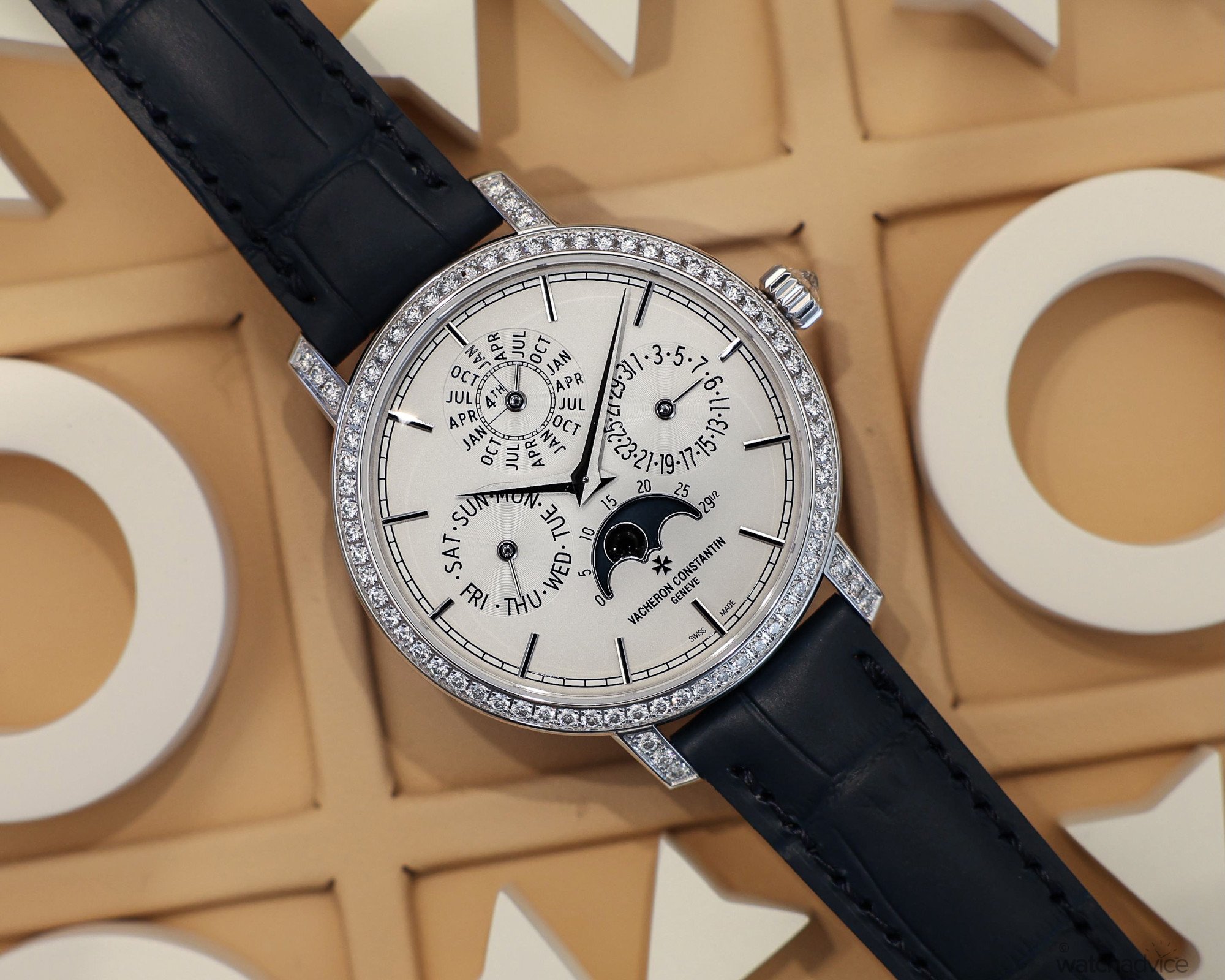 Speaking of the case, this is the first time Vacheron Constantin has made non-gem-set Traditionnelle watches in this case size. However, the Vacheron still has included one in this new collection, and an 18k white gold model with a diamond-set bezel.