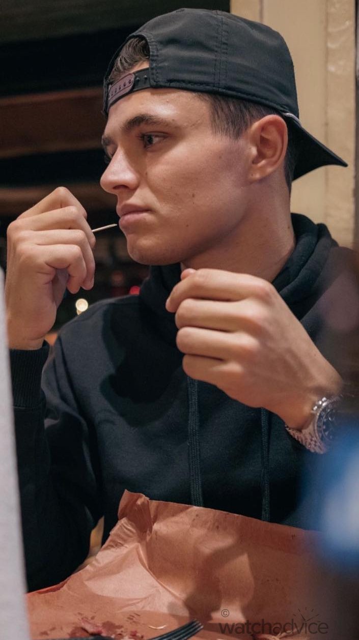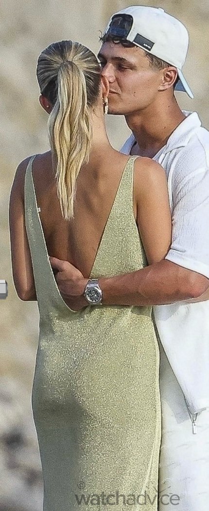 Lando is wearing what appears to be the Rolex GMT-Master II 126710BLNR “Pepsi” in this image of the Formula 1 driver on a night out. Introduced in 2018, the Rolex GMT-Master II 126710BLNR “Pepsi” updates a vintage Rolex classic, now with a 40mm Oystersteel case, Calibre 3285 movement offering a power reserve of 70 hours, and, of course, that iconic Jubilee bracelet. It brings together vintage heritage along with modern Rolex luxury. It’s a watch that is widely popular, especially for those on the go, much like Norris himself, who flies to different Grand Prix locations around the world. The bi-colour bezel makes tracking a second timezone super intuitive, and the watch itself is built like a tank, meaning it can handle everything from race weekends to nights out without missing a beat.