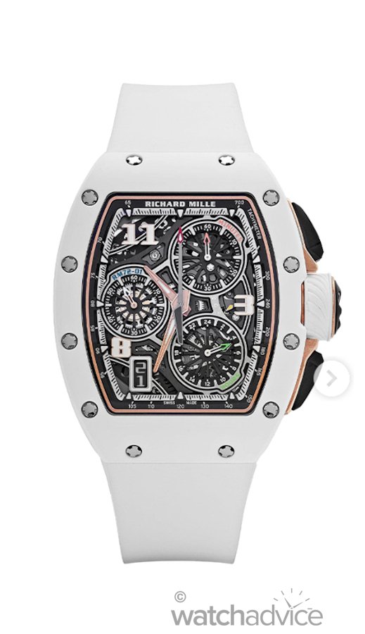 Another noteworthy Richard Mille timepiece in Norris’s collection is the RM 67-02 Sébastien Ogier edition. This was a timepiece that was created for the legendary WRC rally driver, but one that also fits with Lando Norris’s love for ultra-light, high-performance Richard Mille’s. Like the other RM 67-02 editions, it features a titanium baseplate, a shock-resistant and ultra-light Carbon TPT® case and a skeletonised movement that now features the colours of the French flag (blue, white, and red). It’s designed to withstand extreme shock, speed, and movement, making it a natural fit in Lando Norris’s high-performance Richard Mille collection!