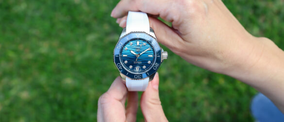 Paired with a white rubber strap, the Aquaracer takes on a fresh, modern character. Dominique repeatedly noted how comfortable the strap is — soft to the touch, flexible, and quick to settle on the wrist. It’s the kind of strap that encourages all-day wear without irritation or adjustment. But should you need to adjust it, then the Aquaracer Professional comes with a quick-adjust slider in the clasp.
