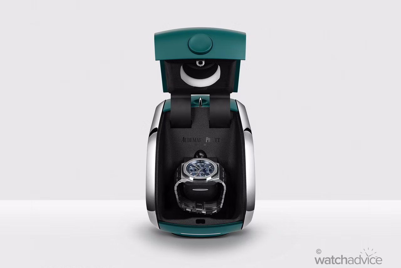 This process of correction is carried out by several interconnected systems, all working together in harmony. There is a mechanical module within the intelligent watch box that replicates the precise movement of the human hand that operates the crown safely. There is also an electronic module that manages communication between hardware and software within the compact architecture. Audemars Piguet states that “Visual data captured by the camera is analysed in real time by a machine-learning algorithm trained on multiple dial configurations, allowing the system to adapt to each individual watch. Dedicated software then orchestrates the entire process, managing movement coordination, error detection, feedback, and Bluetooth connectivity”.