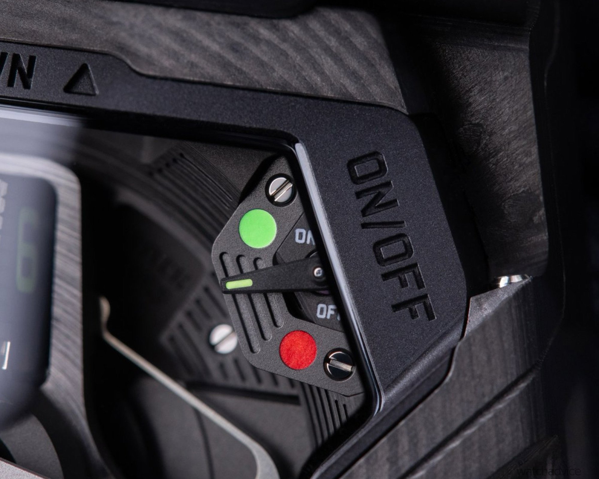 What makes this system particularly compelling is user control. Via a selector on the caseback, the wearer can adjust the rotor load or completely disengage the automatic system, switching the watch to manual winding. Two symmetrical indicators at 11 and 1 o’clock display the current winding status and air brake setting.