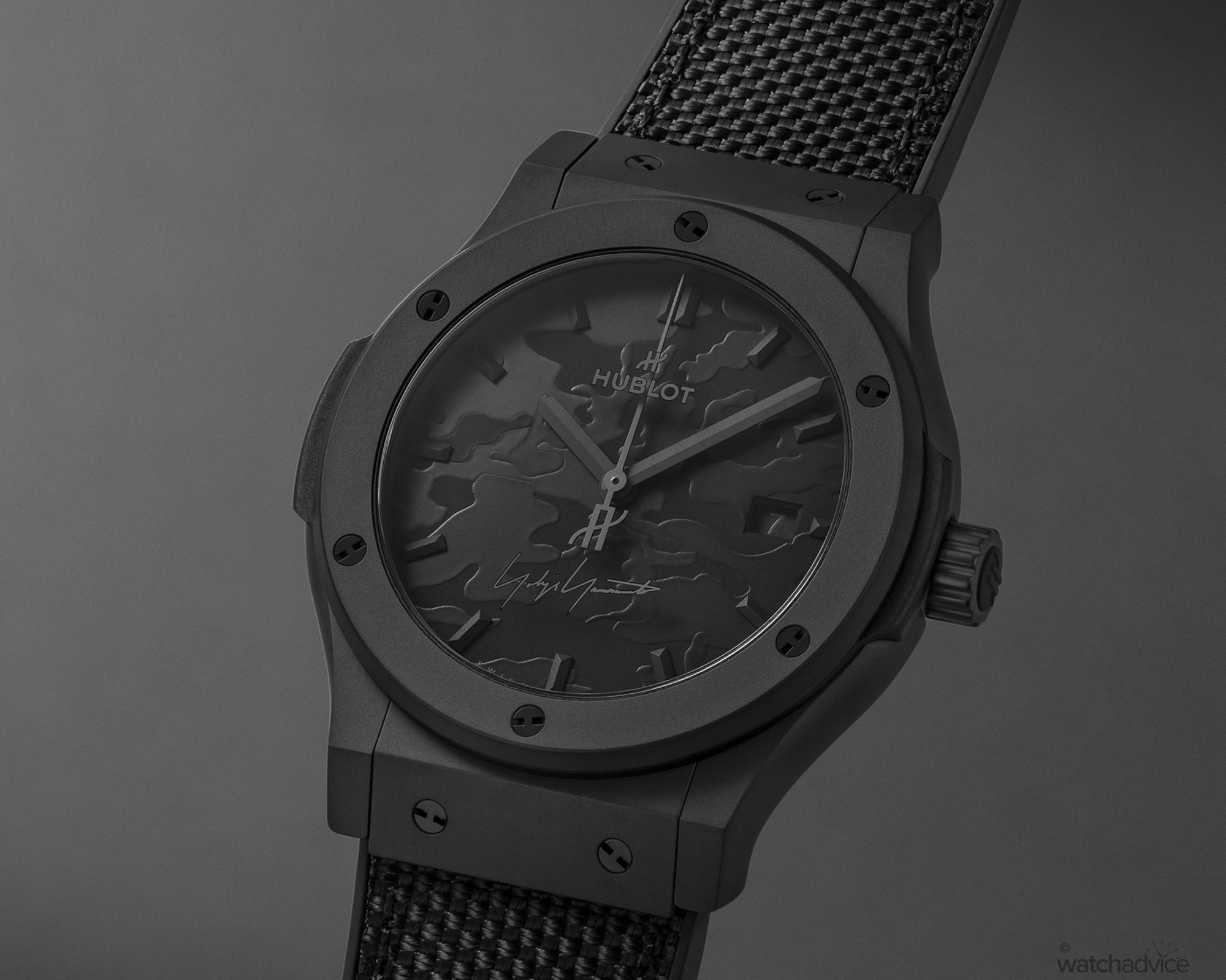 Black on Black on Black is how we describe the new Hublot Classic Fusion Yohji Yamamoto All Black Camo. Did we say it was black?