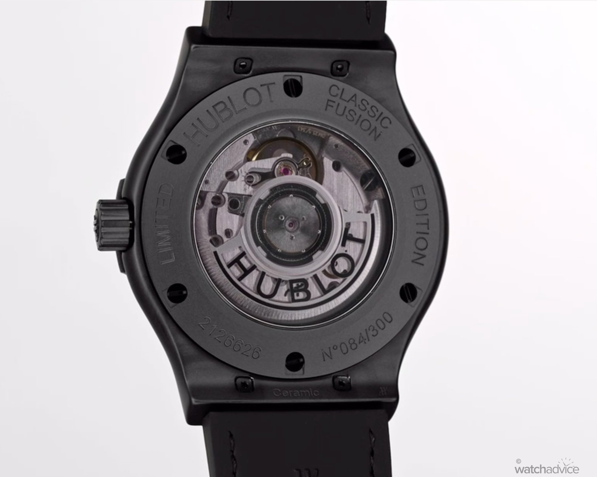 • Caseback: Ceramic and smoked Sapphire crystal