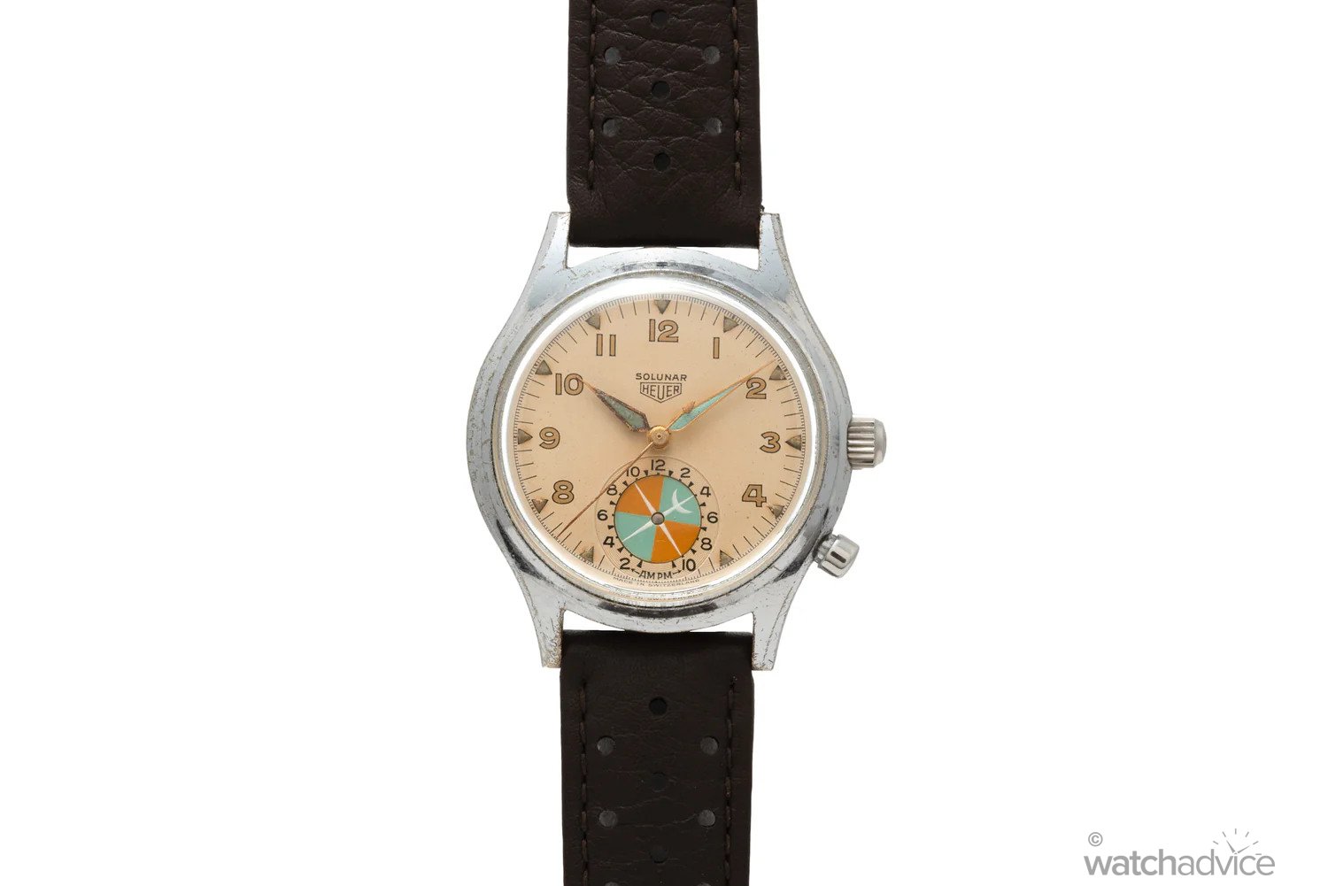 Original Heuer Solunar timepeice with tide indicator at 6 o’clock.