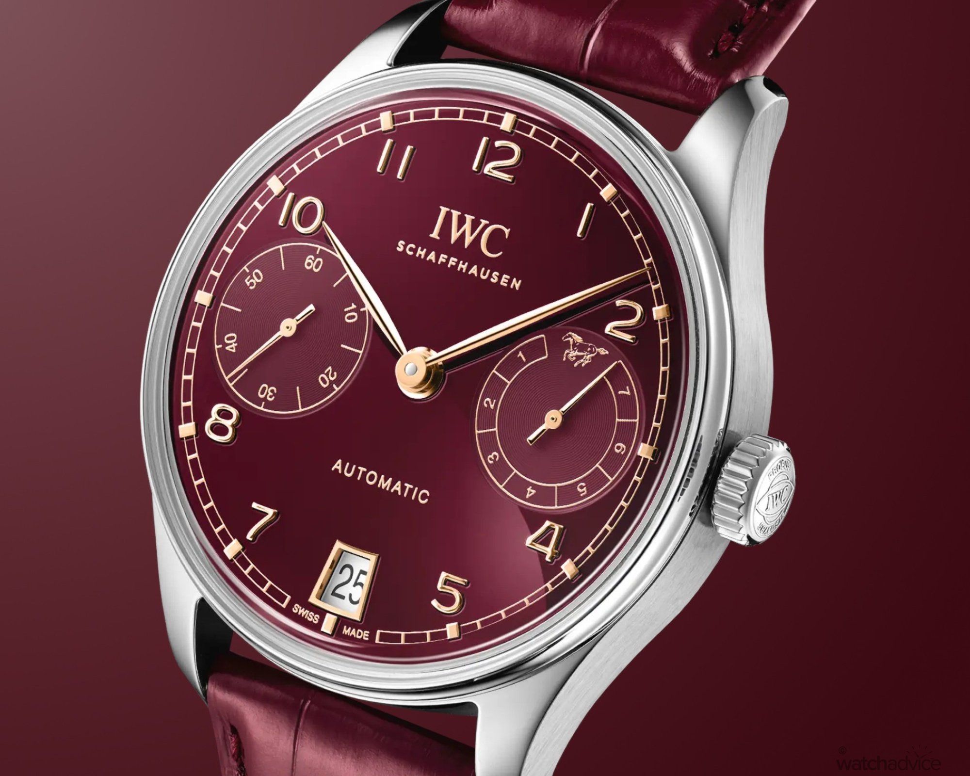 As with other Chinese New Year editions from IWC, the burgundy red dial makes its return. This rich shade is particularly fitting, as red in Chinese culture signifies joy, good luck and fortune, among other auspicious qualities. Set against this warm backdrop, the hands, Arabic numerals and minute track all shine in gold.