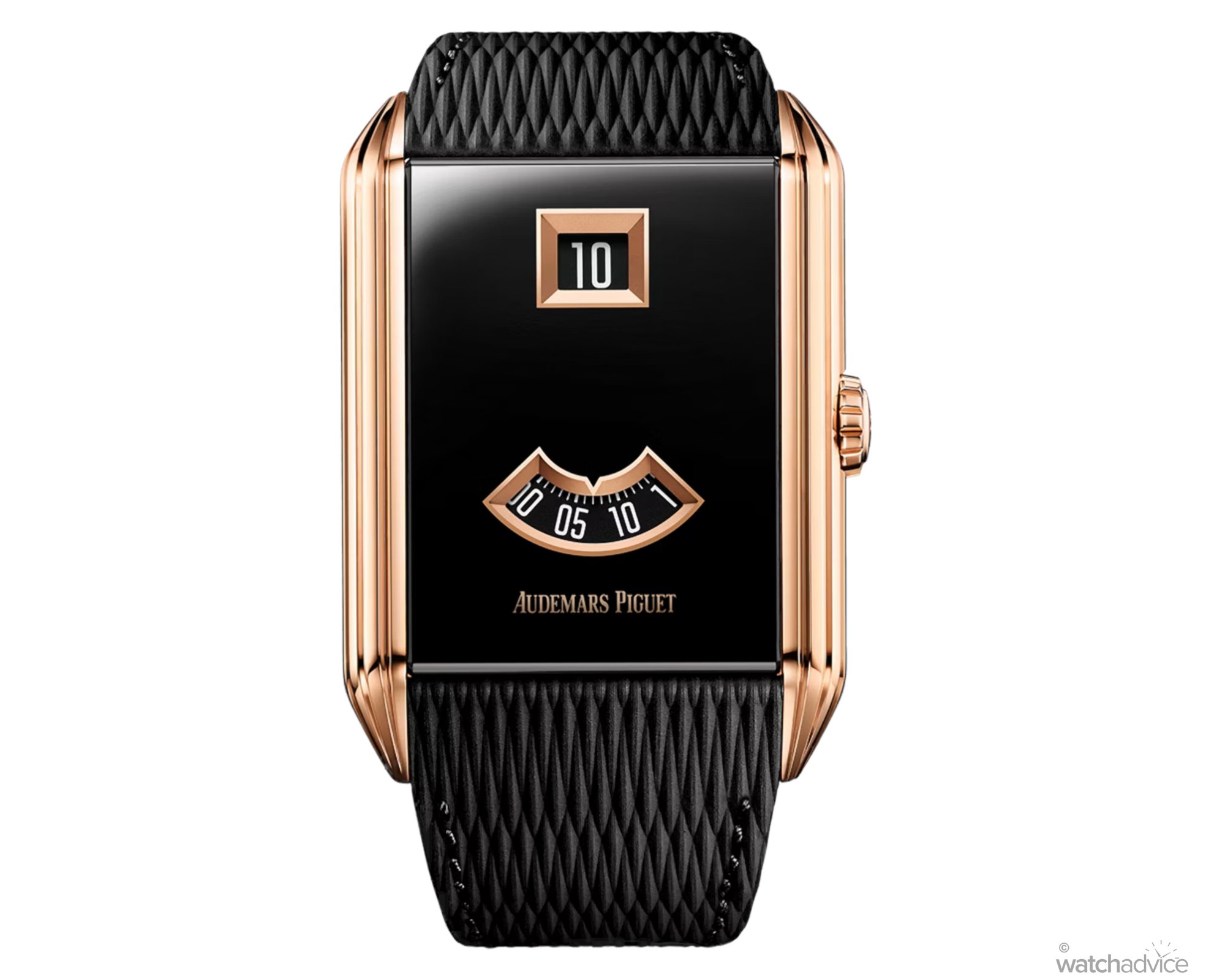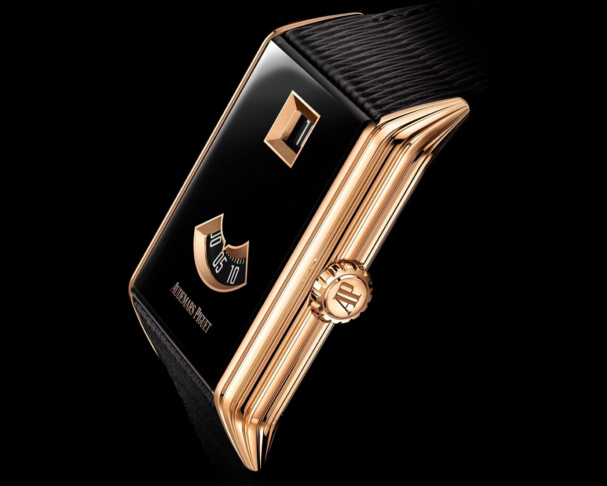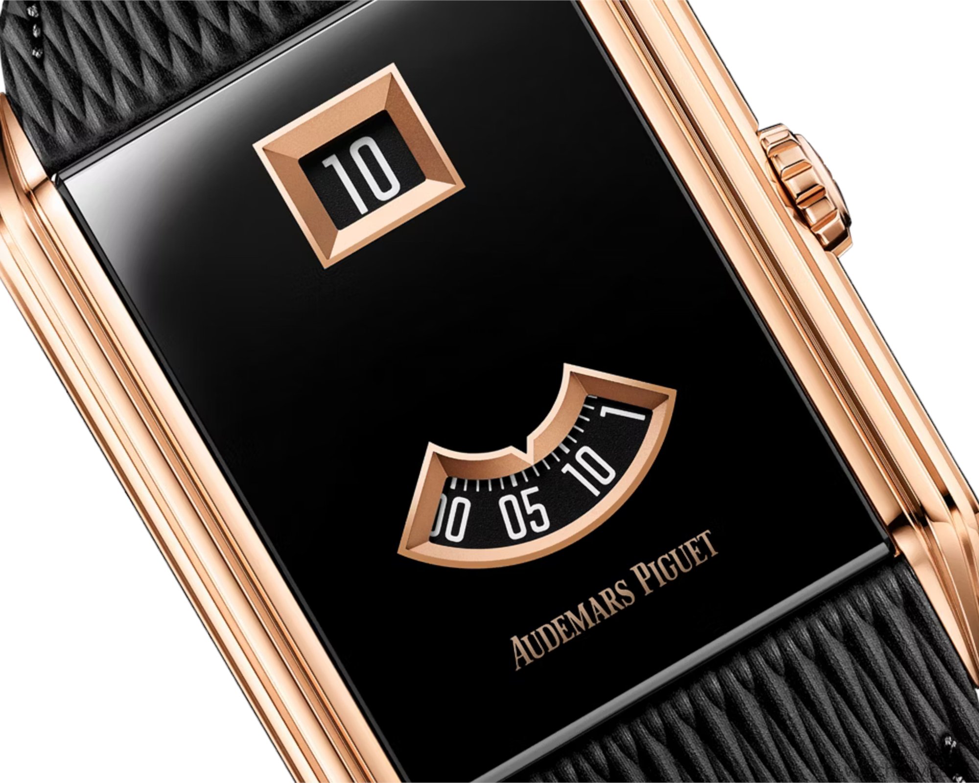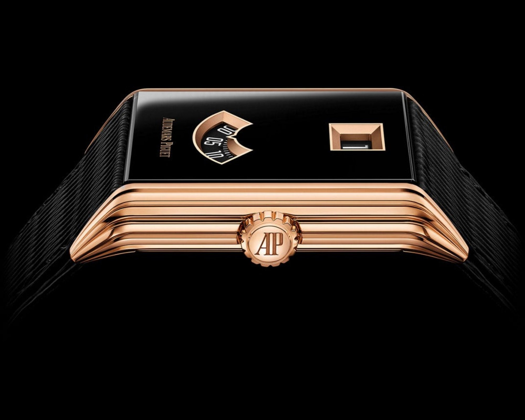 From a design perspective, the Neo Frame Jumping Hour is informed by the late Art Deco Streamline Moderne style. It also draws inspiration from 1920s digital time watches found in Audemars Piguet’s archives, though it remains worlds apart from its more famous sibling.
