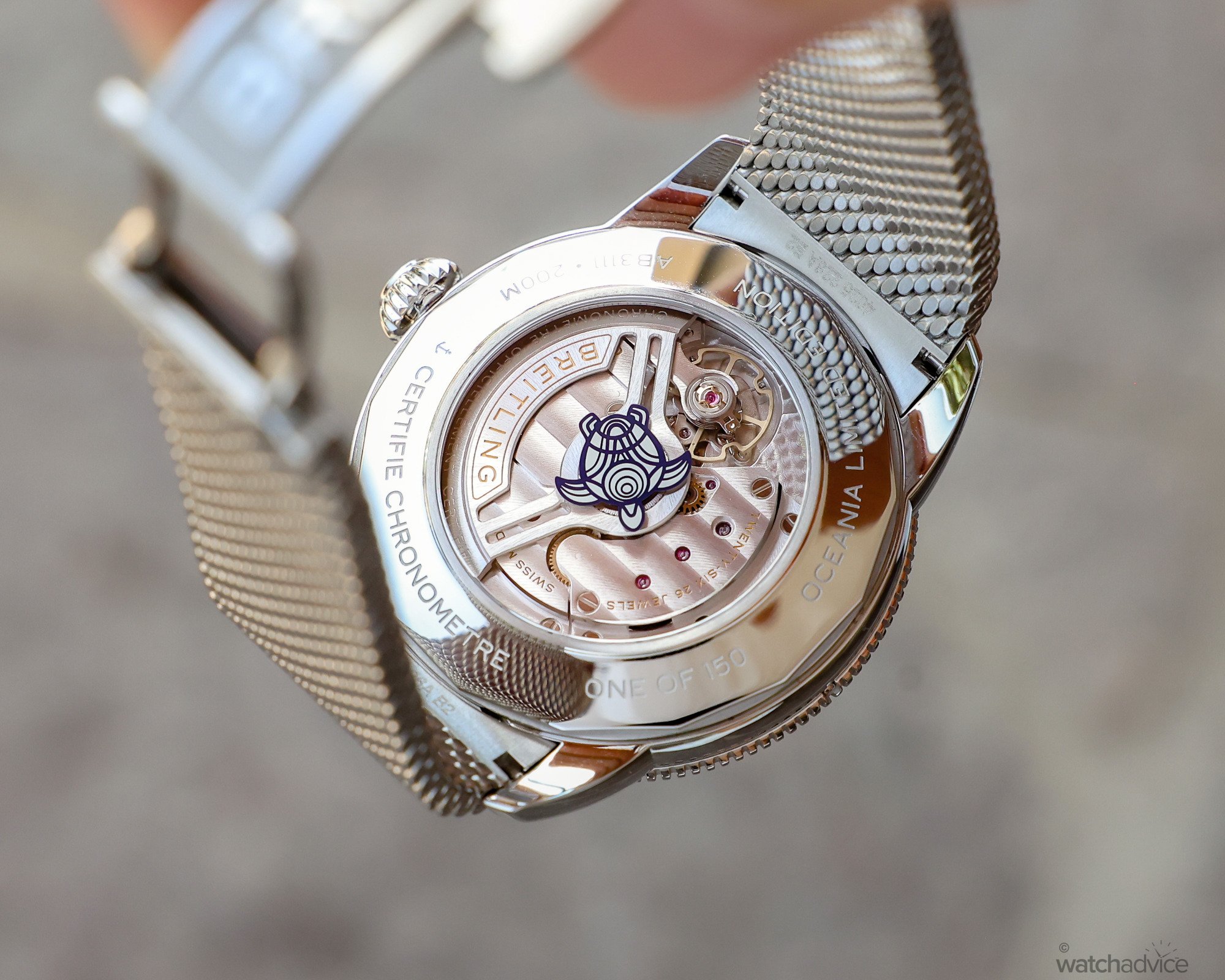 The only other differentiating factor is on the caseback – the crystal has a small sea turtle on the underside of the sapphire (or engraved into the caseback on the 36mm). Why a sea turtle, you may ask? The sea turtle is an enduring symbol of longevity, resilience, and navigation, and as such, Breitling has chosen to use this as the symbol for this collection, and to be honest, I quite like it. It’s a nod to the sea, the collection, but doesn’t overwhelm the caseback to obscure the movement.