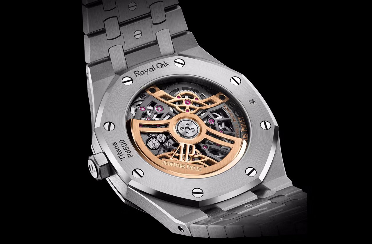 Just like the dial, the caseback offers an unobstructed view of the Calibre 7139. The most notable feature is the skeletonised pink gold winding rotor, with the AP logo proudly on display. The barrel bridge and balance wheel bridge are also crafted in pink gold, which, in my opinion, is beautifully executed against the surrounding rhodium-finished elements, allowing the warm tones of the gold to truly stand out.