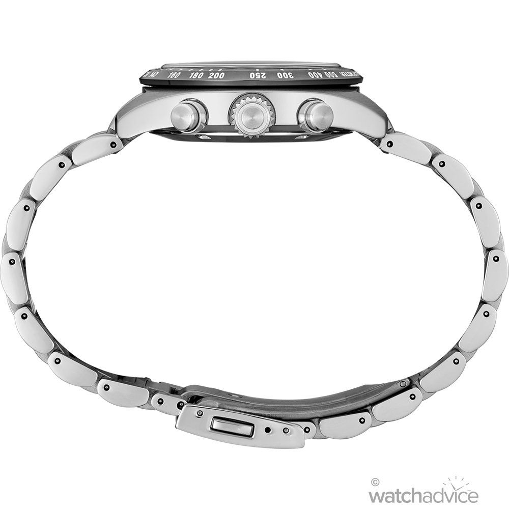 The steel case is presented with a brushed finish, while the chronograph pushers and crown feature a polished finish for added depth. The three-link bracelet follows suit with a satin-brushed finish, offering a cohesive look that balances durability with a refined, motorsport-inspired aesthetic.