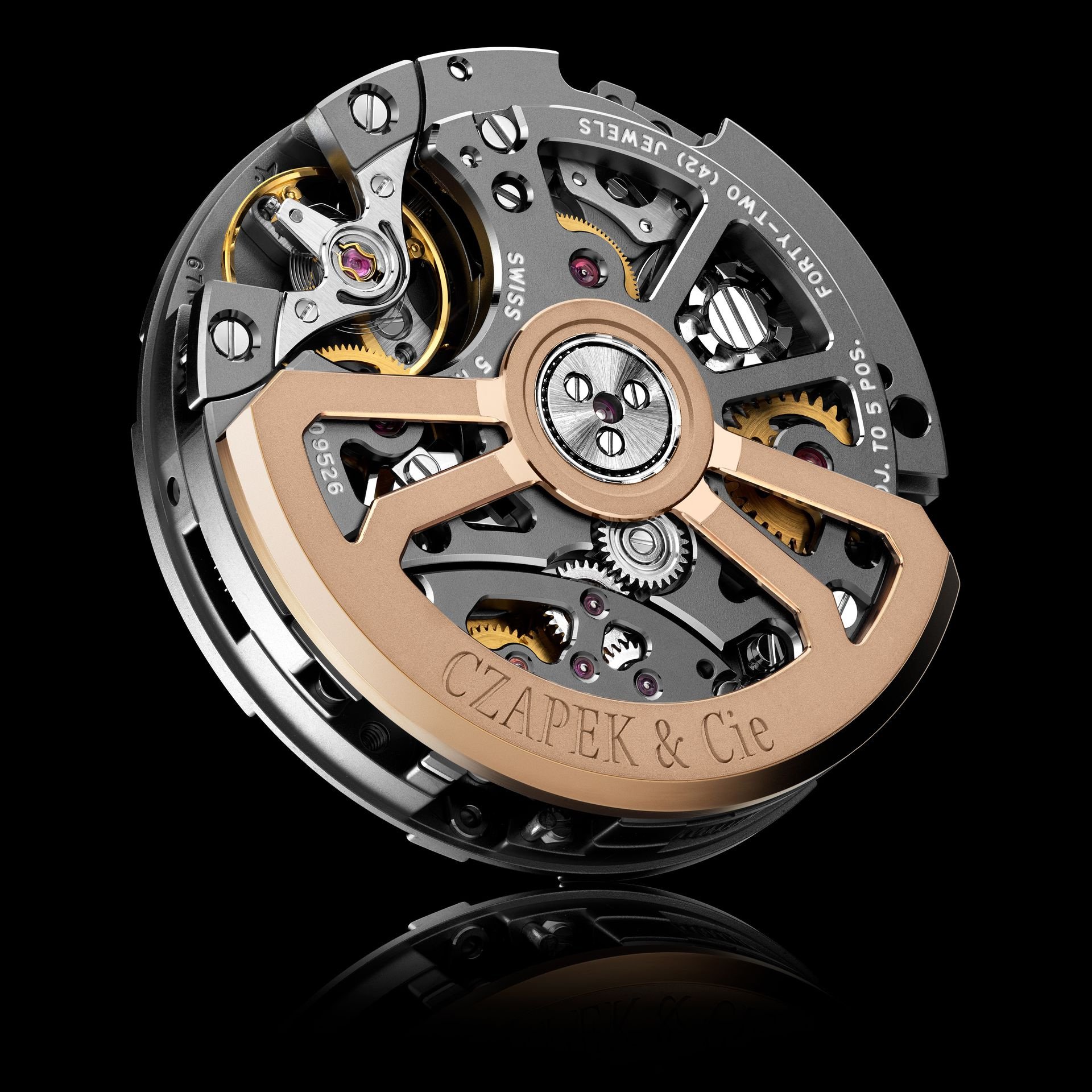 - Movement: Calibre SXH3: haute horlogerie integratedautomatic chronograph movement with aCzapek bespoke execution.
