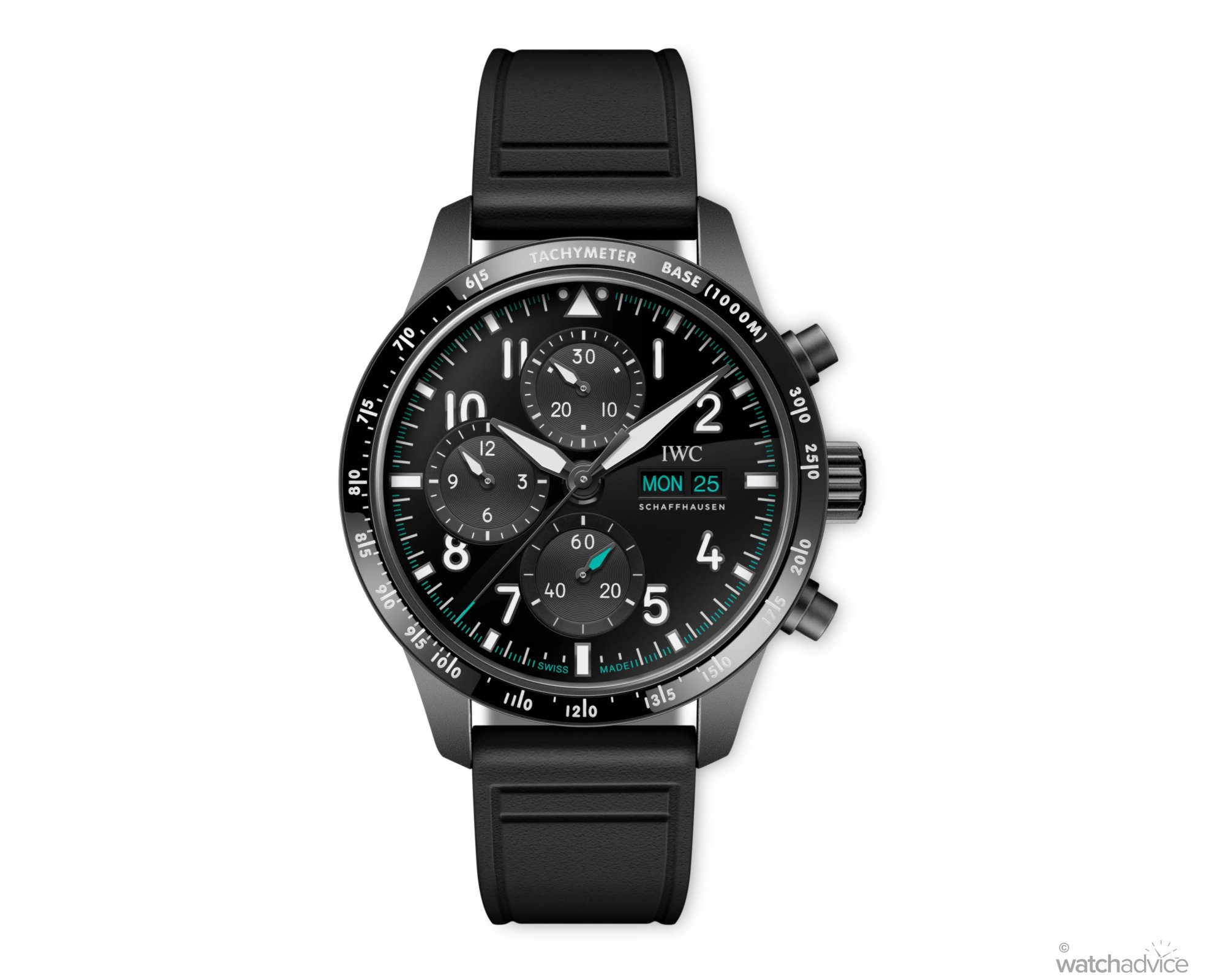 Bright teal accents pop against the black backdrop, mostly crafted from IWC’s proprietary Ceratanium. With the finish and lightness of ceramic and the toughness of titanium, it is a serious weapon of choice for the starry-eyed rookie.