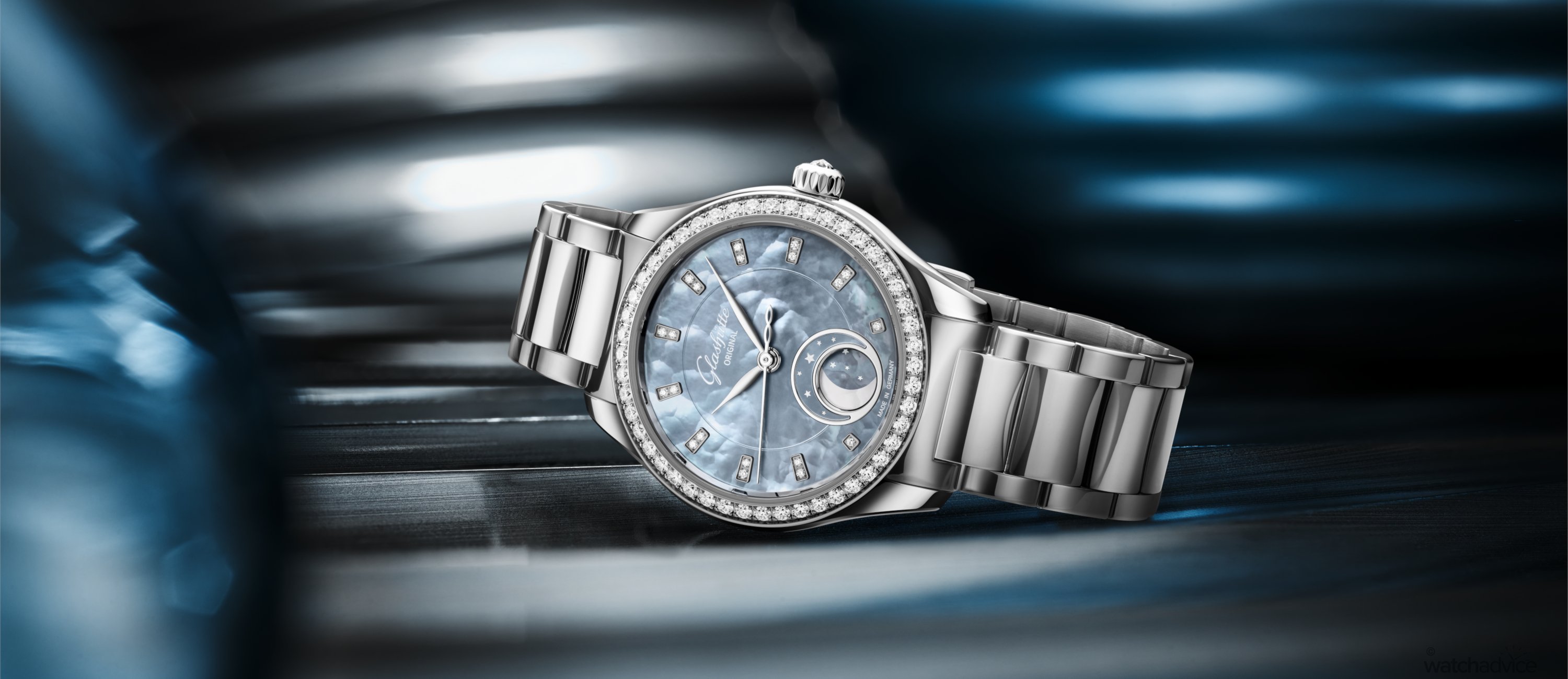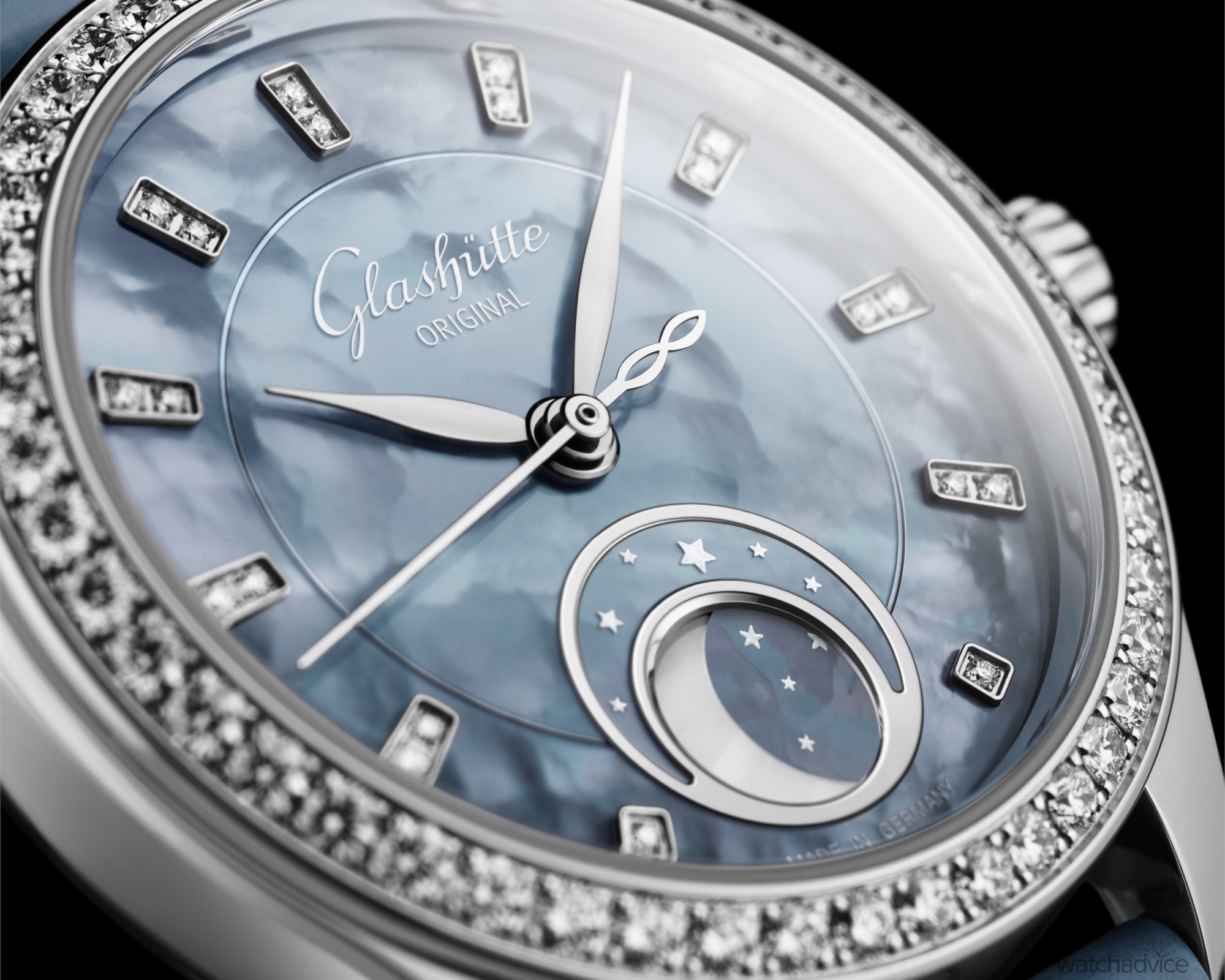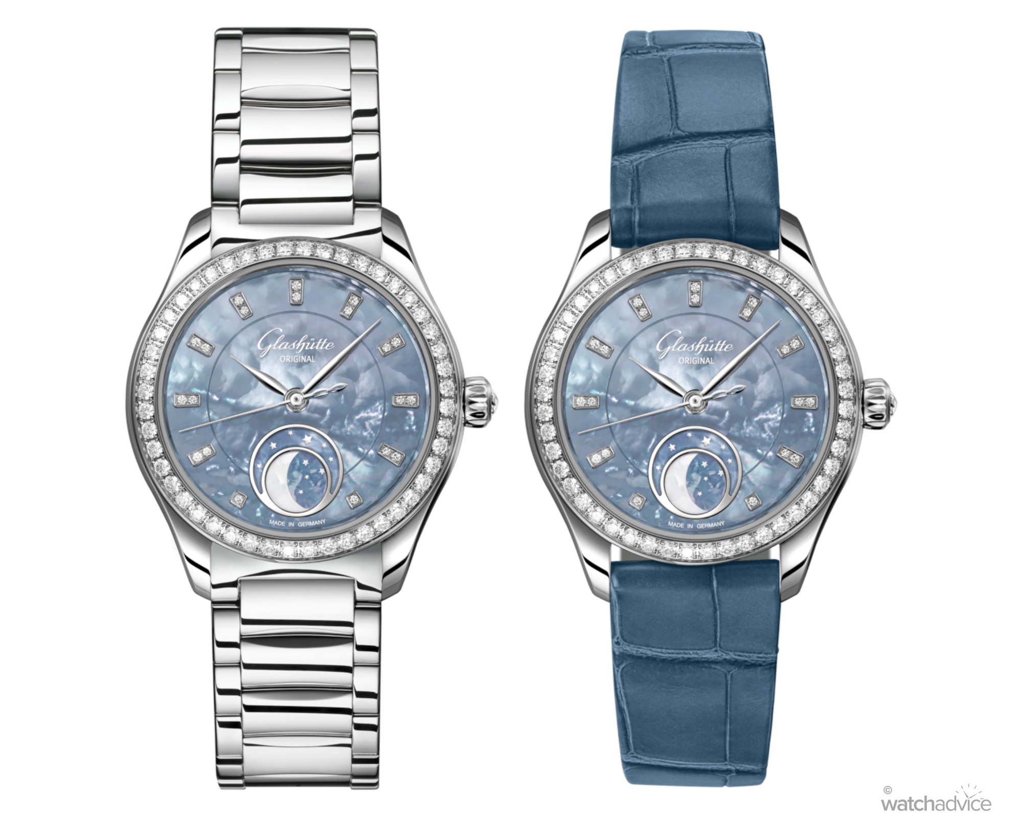 Upping the sophistication of their Serenade Luna line, Glashütte Original presents a new version of the watch in a blue mother-of-pearl dial.