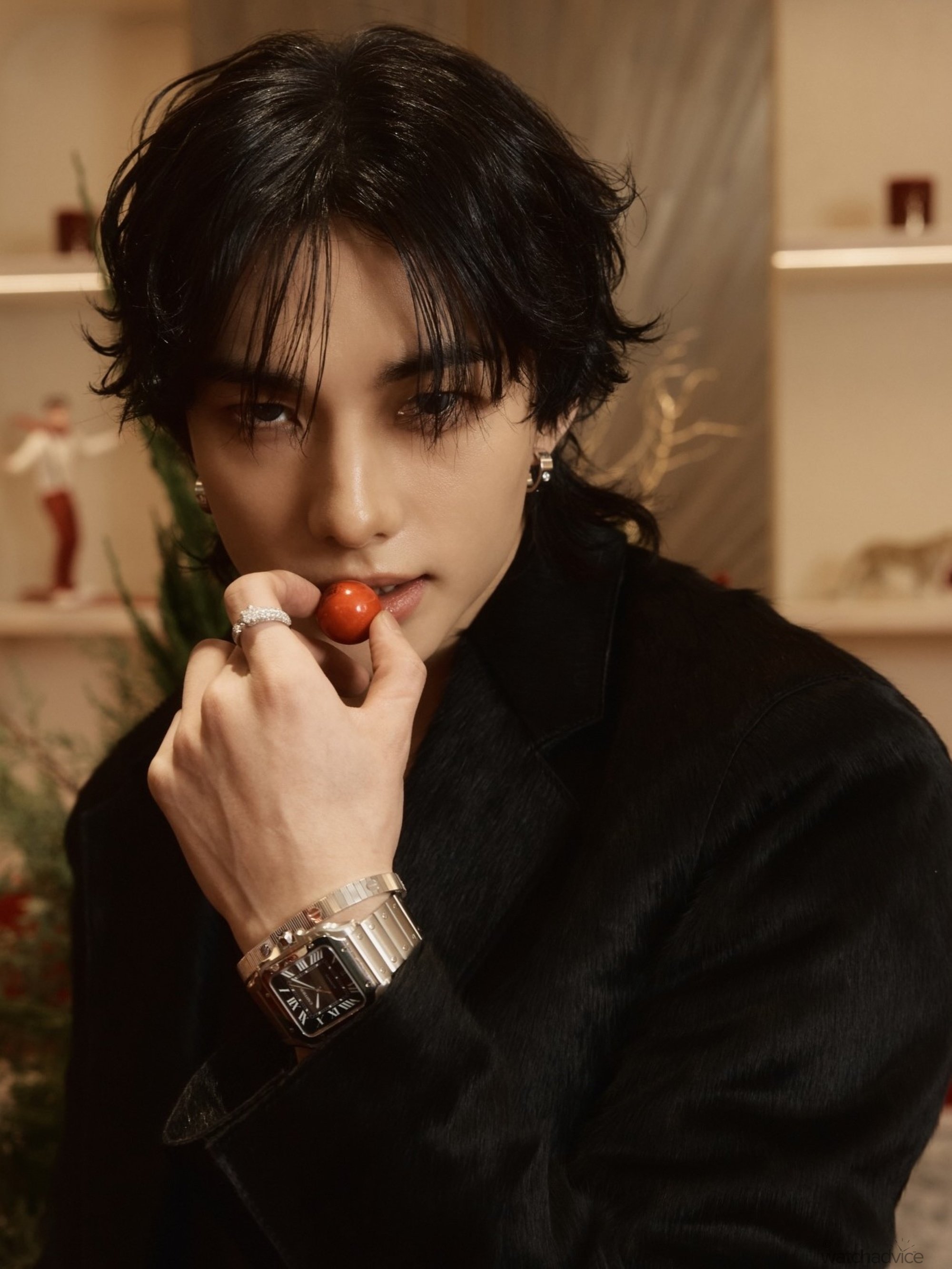 While he remains a core member of Stray Kids, hints of a solo career have begun to emerge. Cartier seems to have taken note, naming Hyunjin a global ambassador for the brand in 2024. As part of his partnership, he can often be seen wearing the Cartier Santos de Cartier Large.