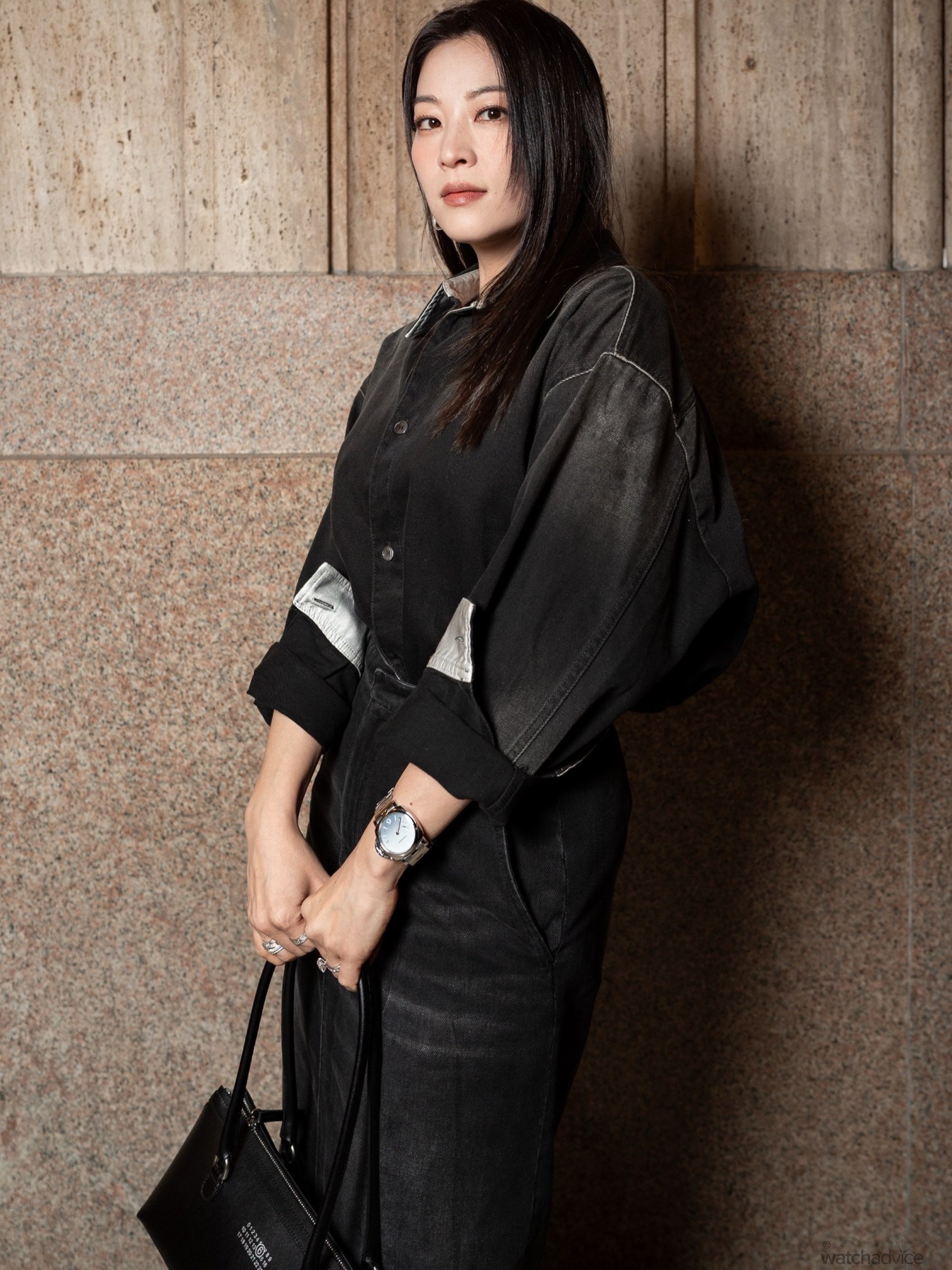 For Cho, her timepiece of choice could only be something as bold and enduring as her career. Here, she wears the blue version of Panerai’s Luminor Due Pastello. It carries the same diver aesthetic signature of the Florentine brand, yet its execution is less tool-focused and more an elegant tribute to Panerai’s heritage. The dial, shifting between shades of pale blue, makes it an eye-catcher at any event.